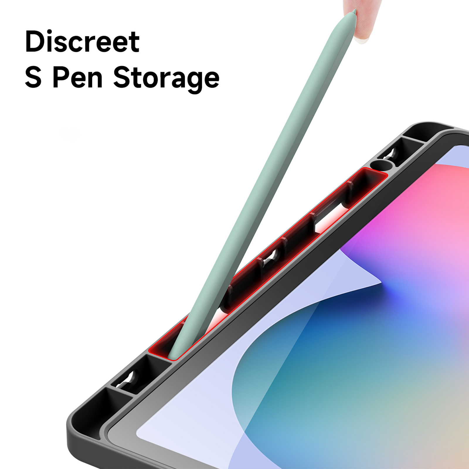 Has special holder and hole for holding the S Pen.