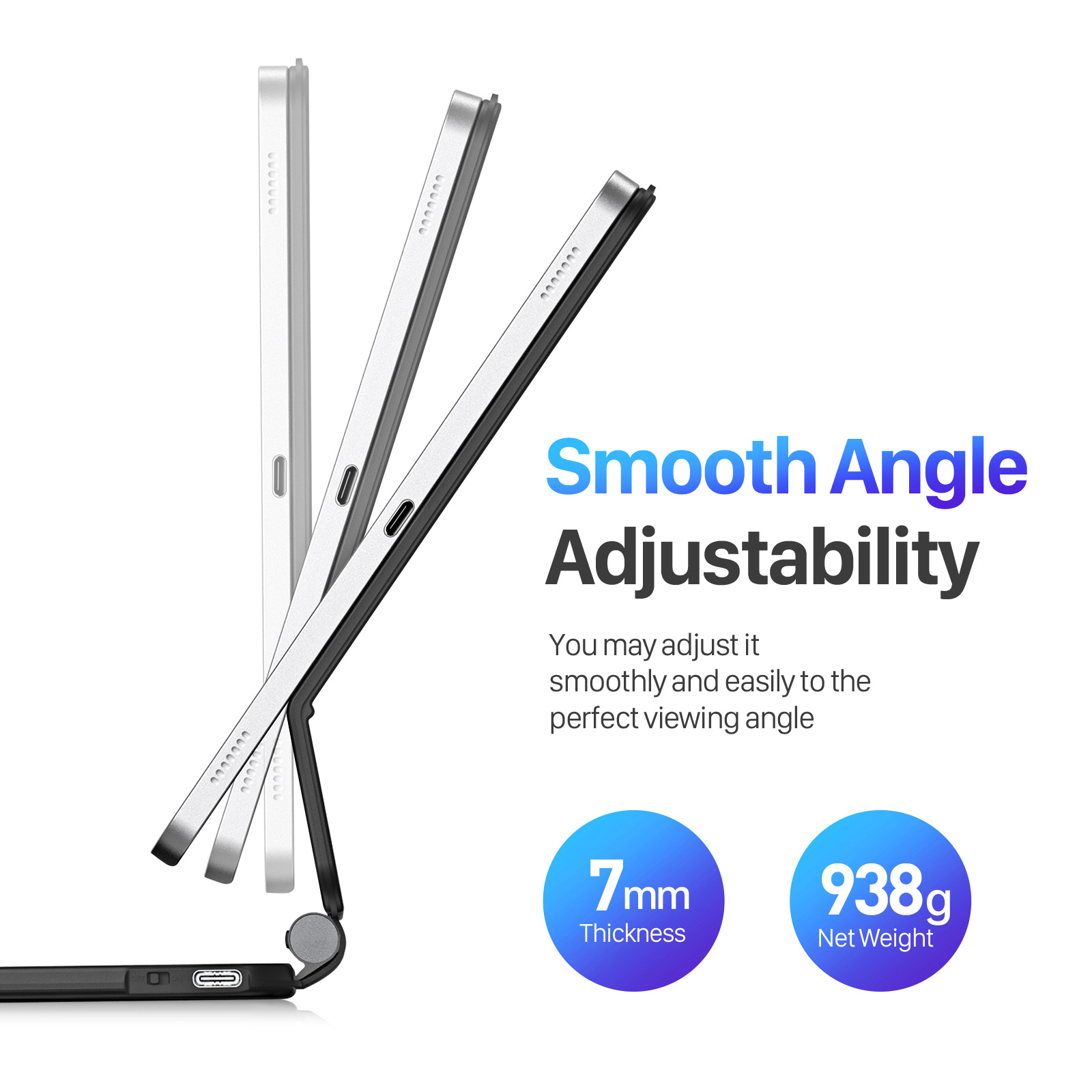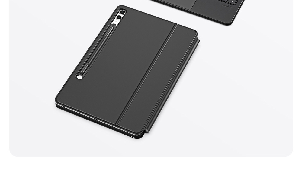 It features a floating cantilever design allowing you to attach Samsung Tab S9 / S8 / S7 magnetically and to smoothly adjust to a perfect viewing angle, which will help you maintain much better posture at your desk, that is good for your neck and shoulders.