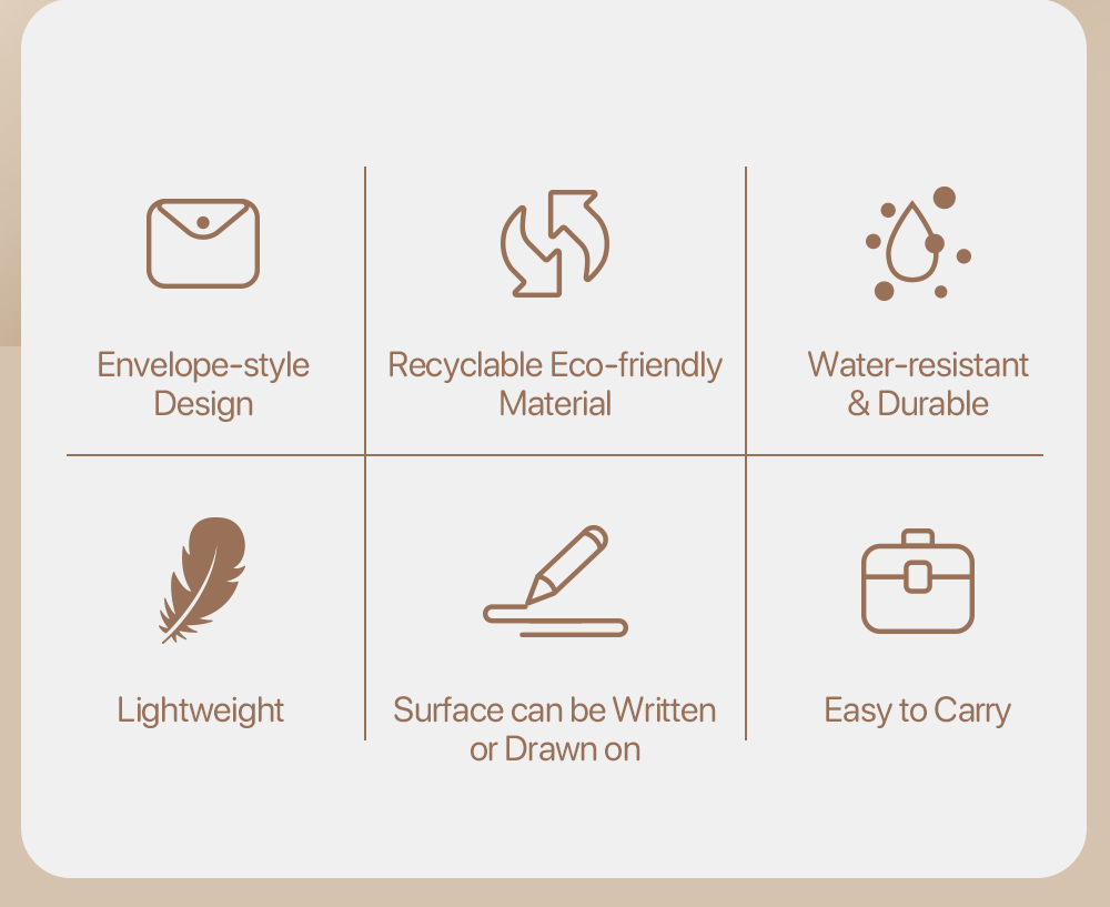 1. Made from eco-friendly DuPont™ paper - water-resistant, tear-resistant, and recyclable.