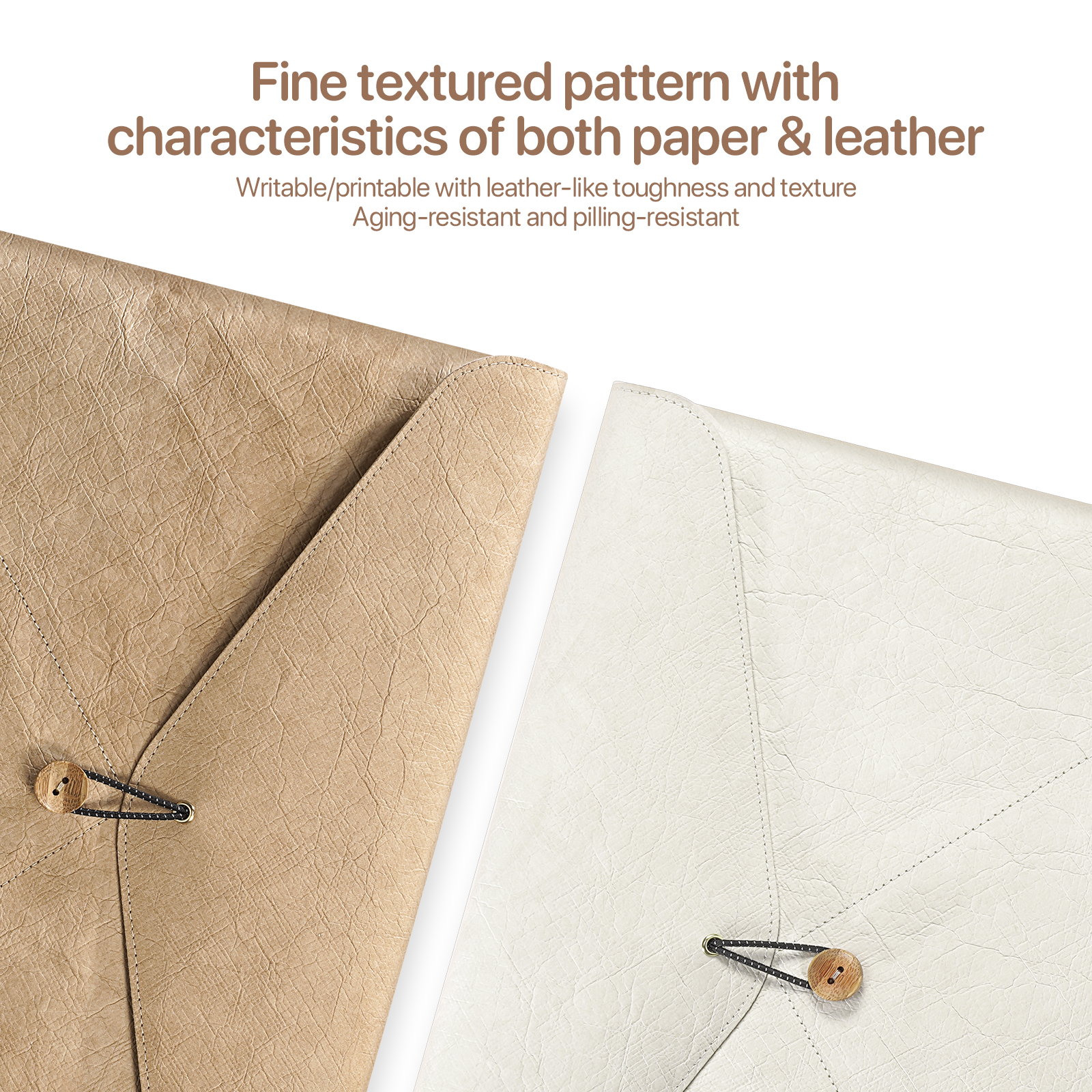 5. Textured surface is writable and combines paper-light weight with leather-like durability.