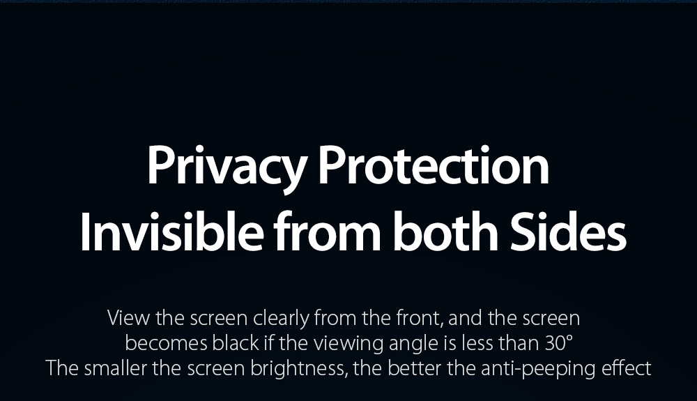 View the screen clearly from the front, and the screen becomes black if the viewing angle is less than 30°. The smaller the screen brightness, the better the anti-peeping effect.