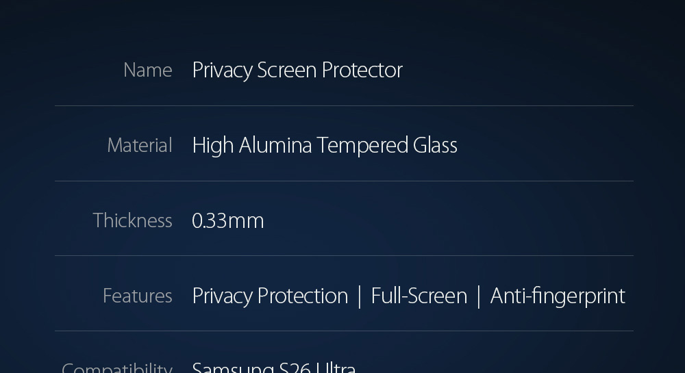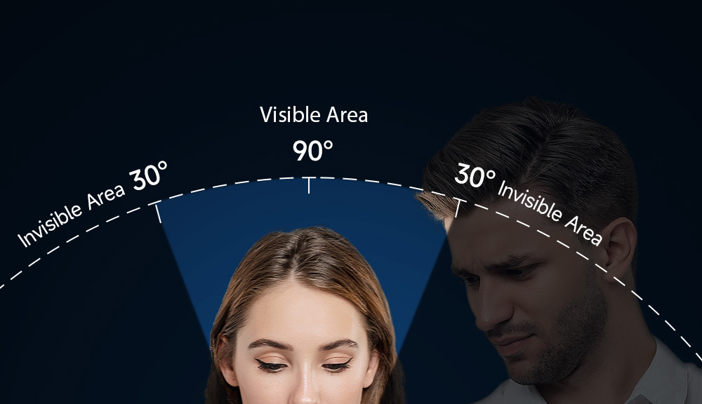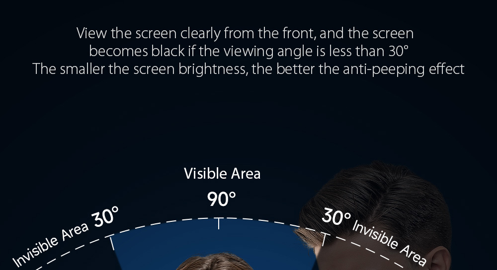 View the screen clearly from the front, and the screen becomes black if the viewing angle is less than 30°. The smaller the screen brightness, the better the anti-peeping effect.