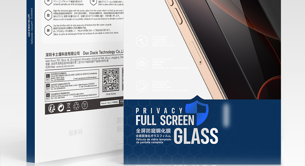 9H hardness screen protector effectively resist scratches and impacts from the sharp objects. The hydrophobic coating reduces the adhesion of fingerprints, the screen is as bright and clean as new for a long time.