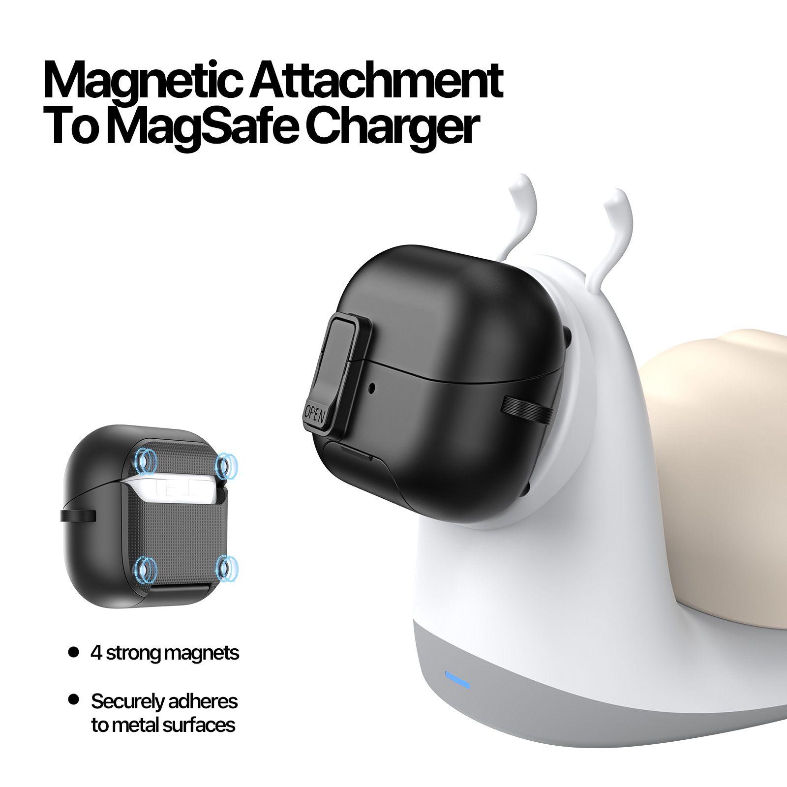 3. Magnetic back for easy attachment to MagSafe chargers and metal surfaces.