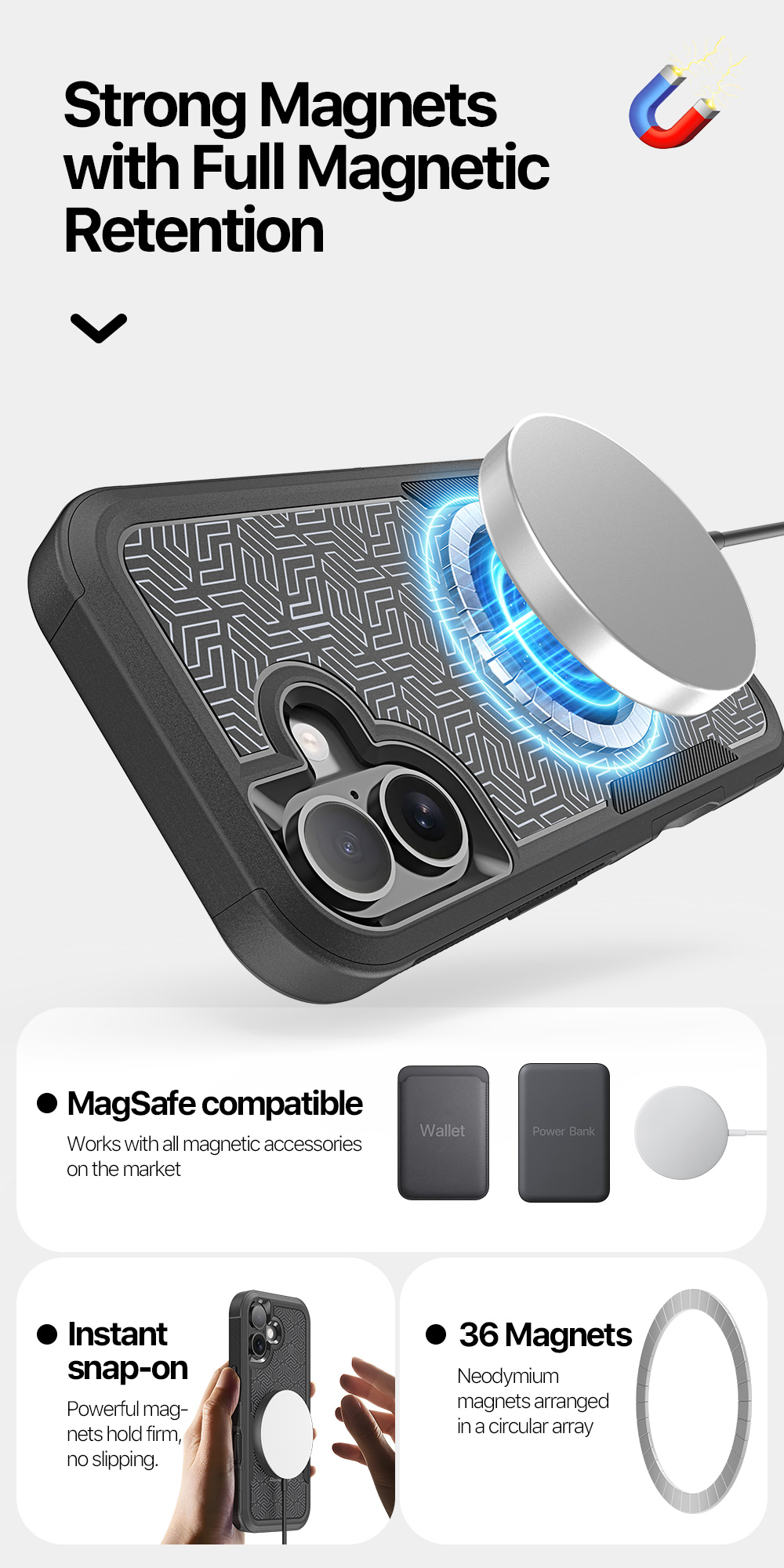 36-Point MagSafe Array – Instant snap-on with all magnetic accessories; zero slippage.