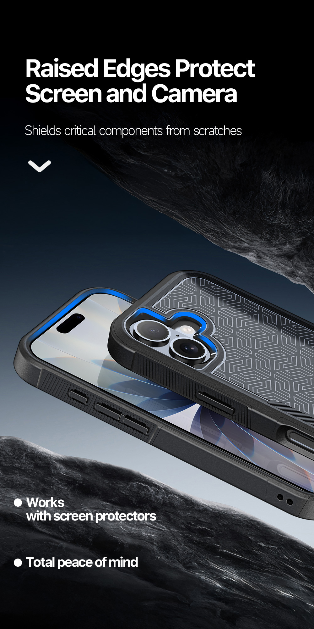 Raised Screen/Camera Guard – Protects displays & lenses from impacts/scratches.