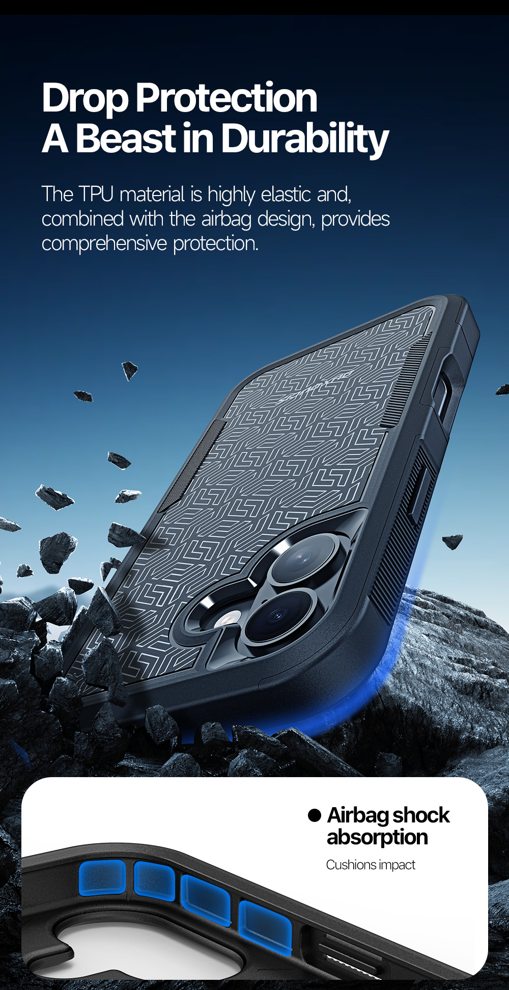 3m MIL-SPEC Drop Defense – Airbag TPU + PC absorbs shock for extreme outdoor use.