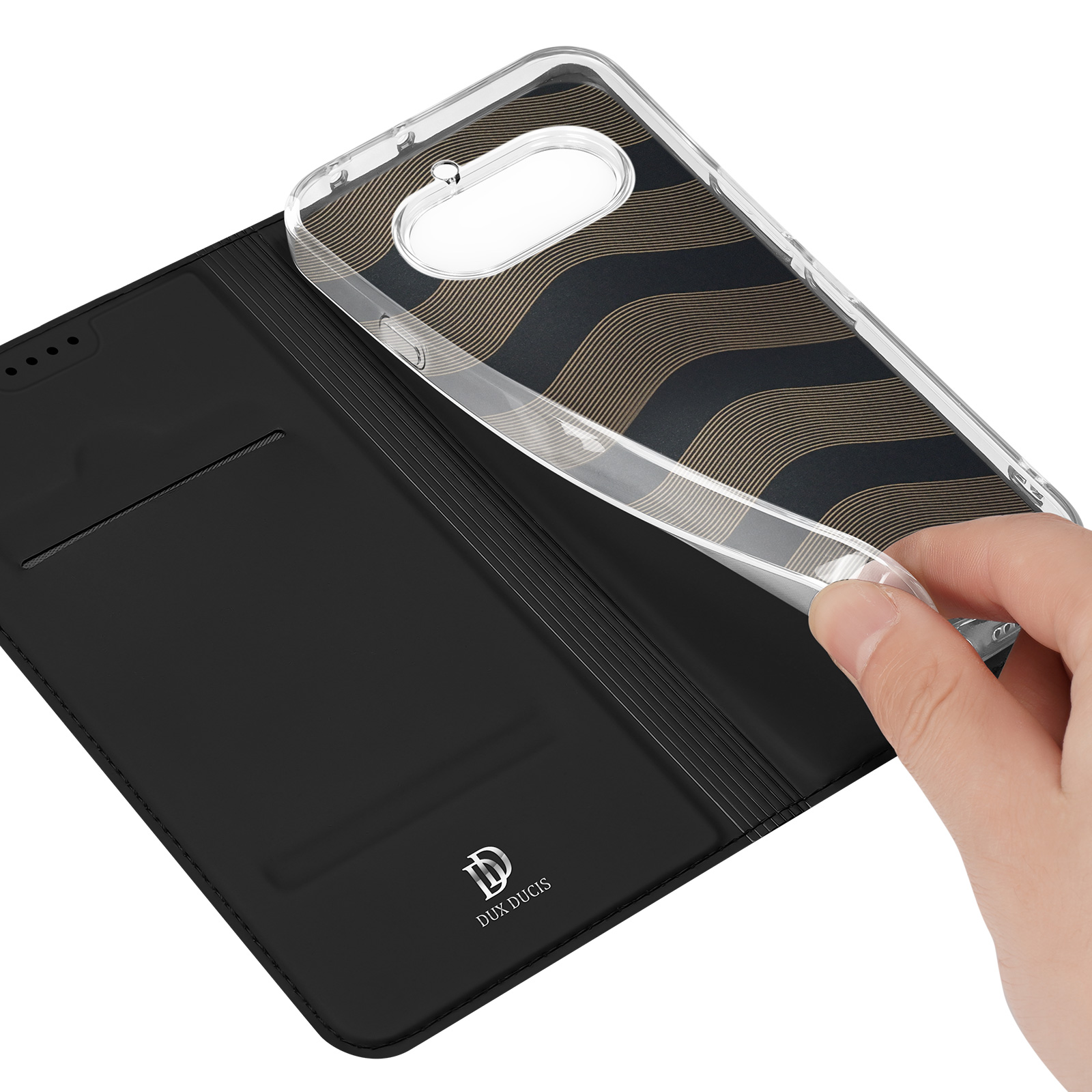 Made of high quality synthetic PU leather with transparent TPU back cover.