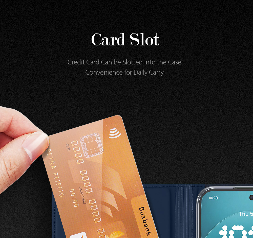 Made of high quality synthetic PU leather with transparent TPU back cover.