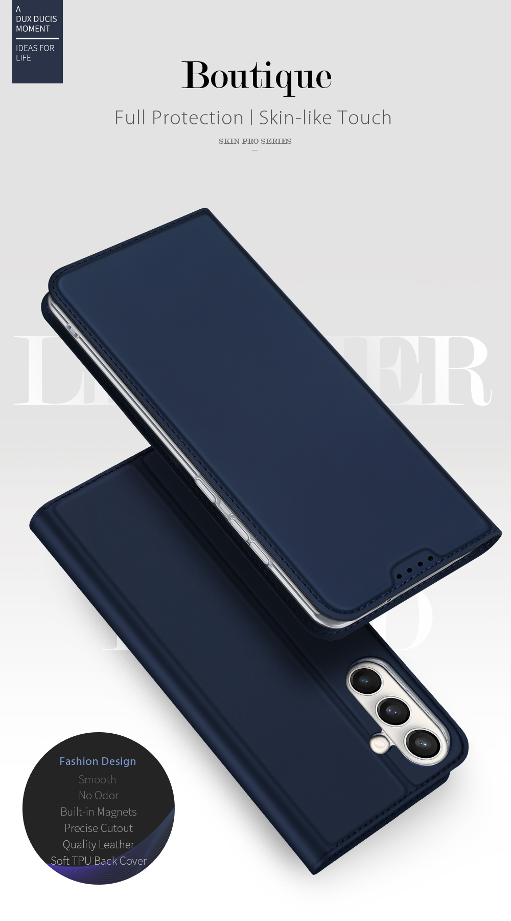 Made of high quality synthetic PU leather with transparent TPU back cover.