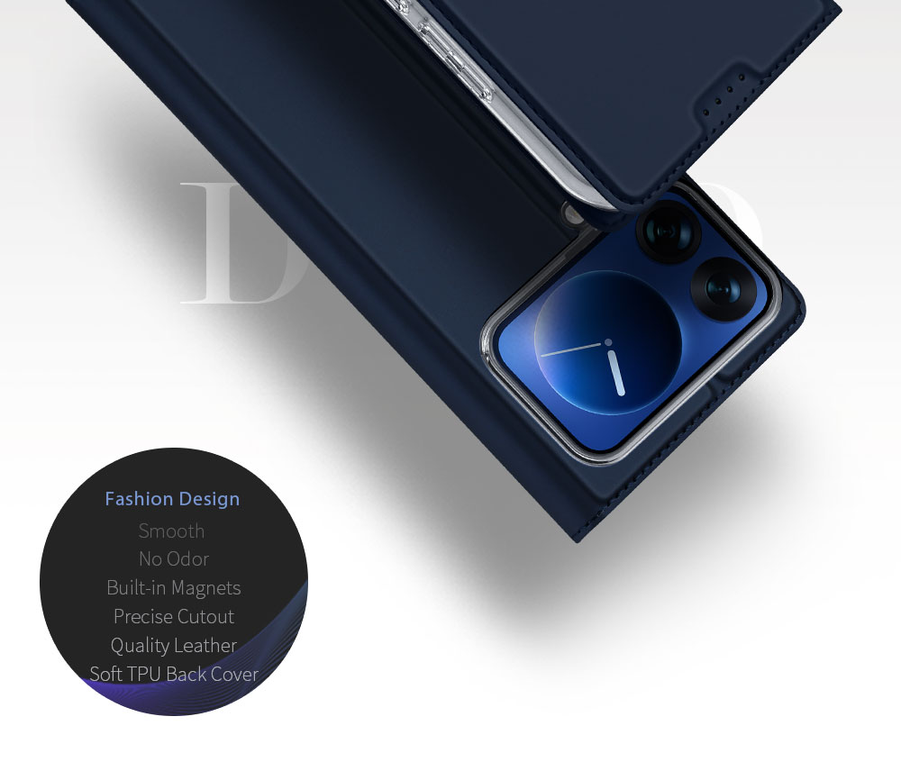 Made of high quality synthetic PU leather with transparent TPU back cover.