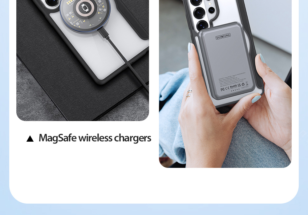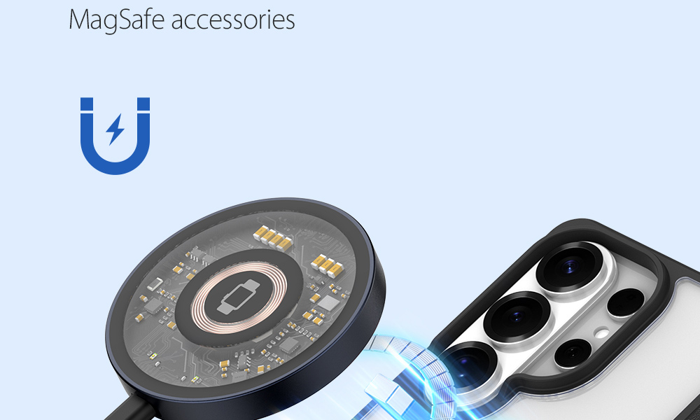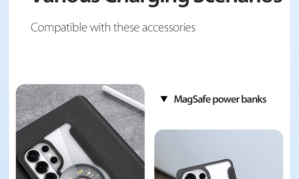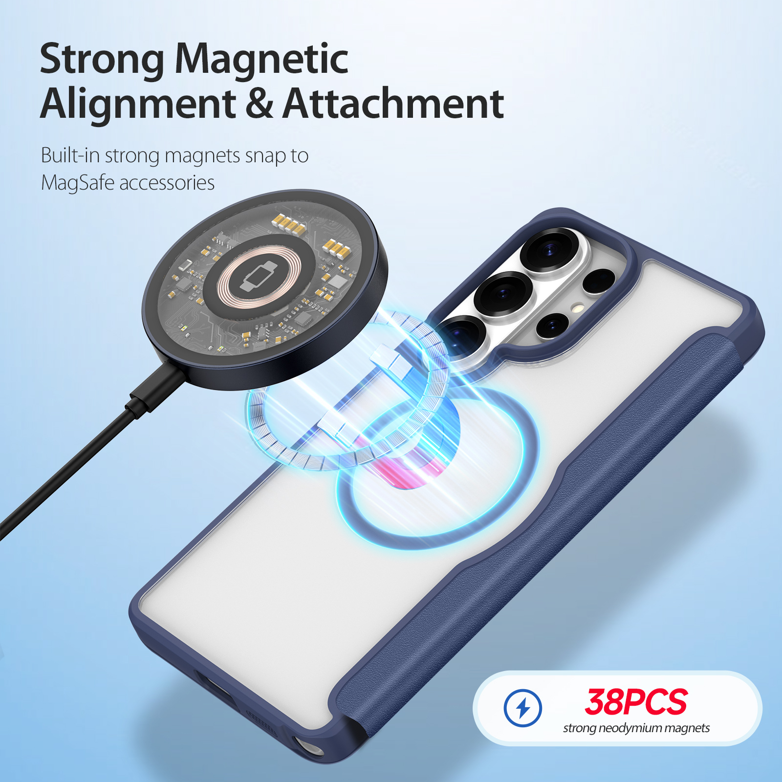 The world's first folio case with MagSafe for Samsung S26 Ultra, it works with Magsafe chargers, wallets, power banks. When it’s time to charge your Phone, just leave the case on your Phone and attach to your MagSafe charger.