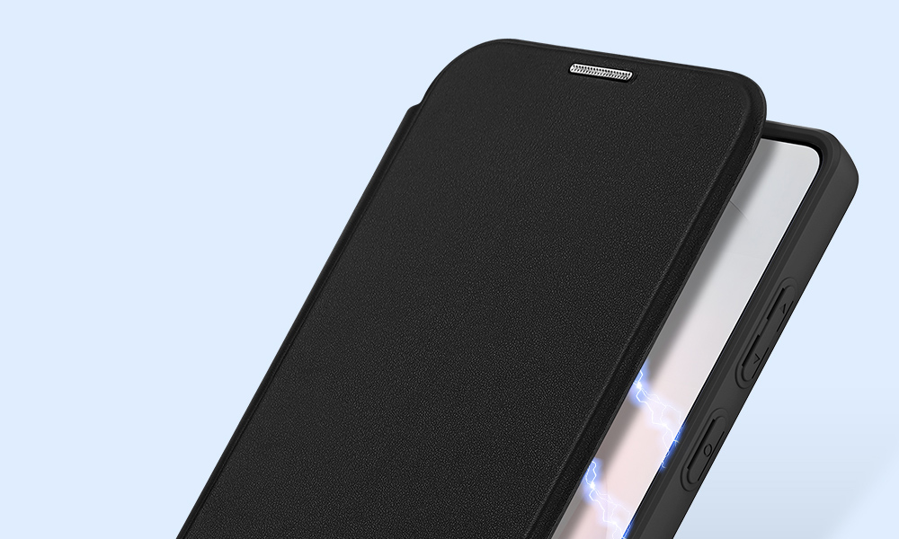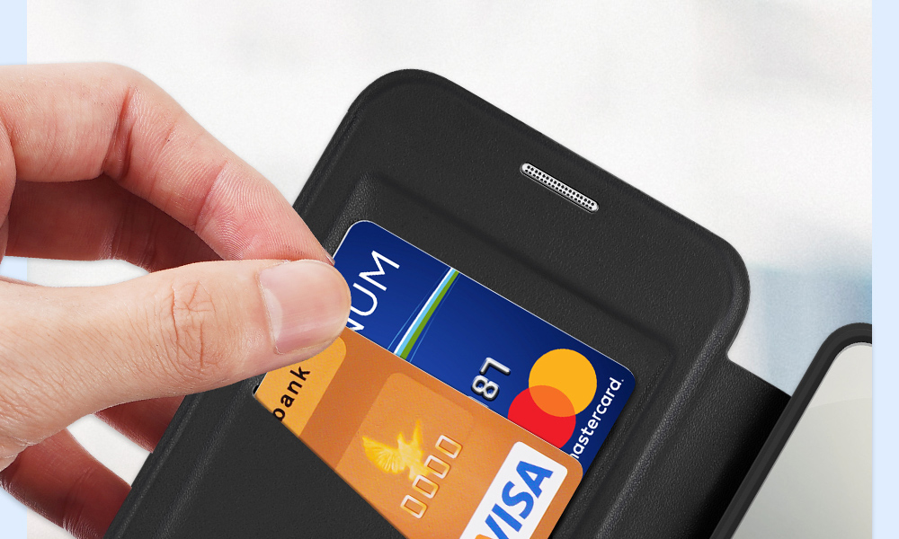 Hidden magnets allow the front cover to attach to the frame when you close the case, strong magnetic closure keeps your phone encased in the case.