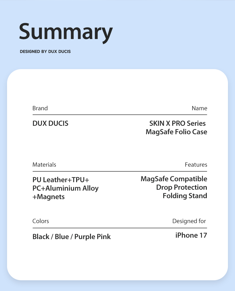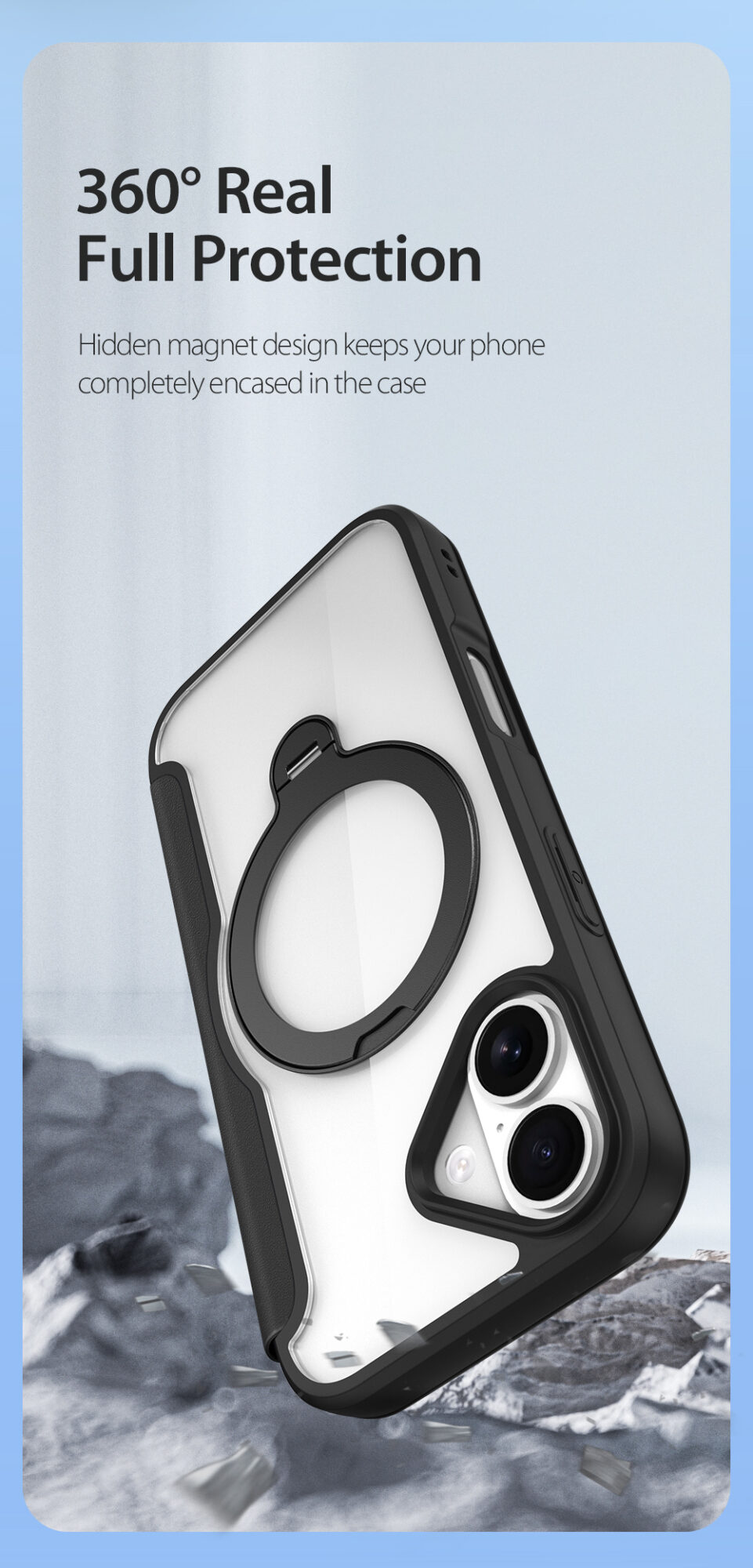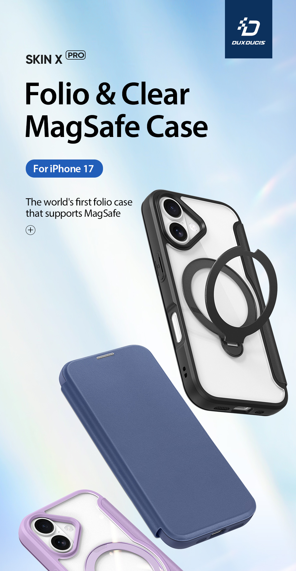 Skin X Pro Series Folio Magnetic Case with 360° Ring Stand for iPhone 17