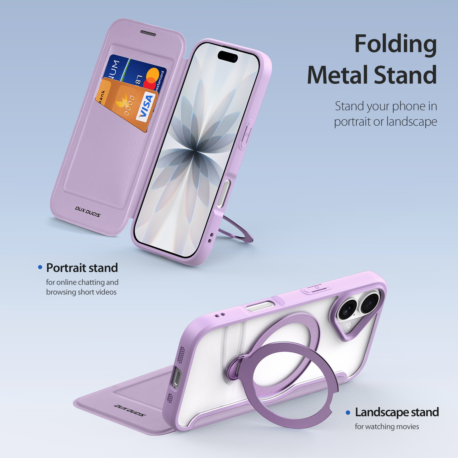 It can stand your phone in portrait or landscape, so that you can browse short-term videos or watch movies on your phone.