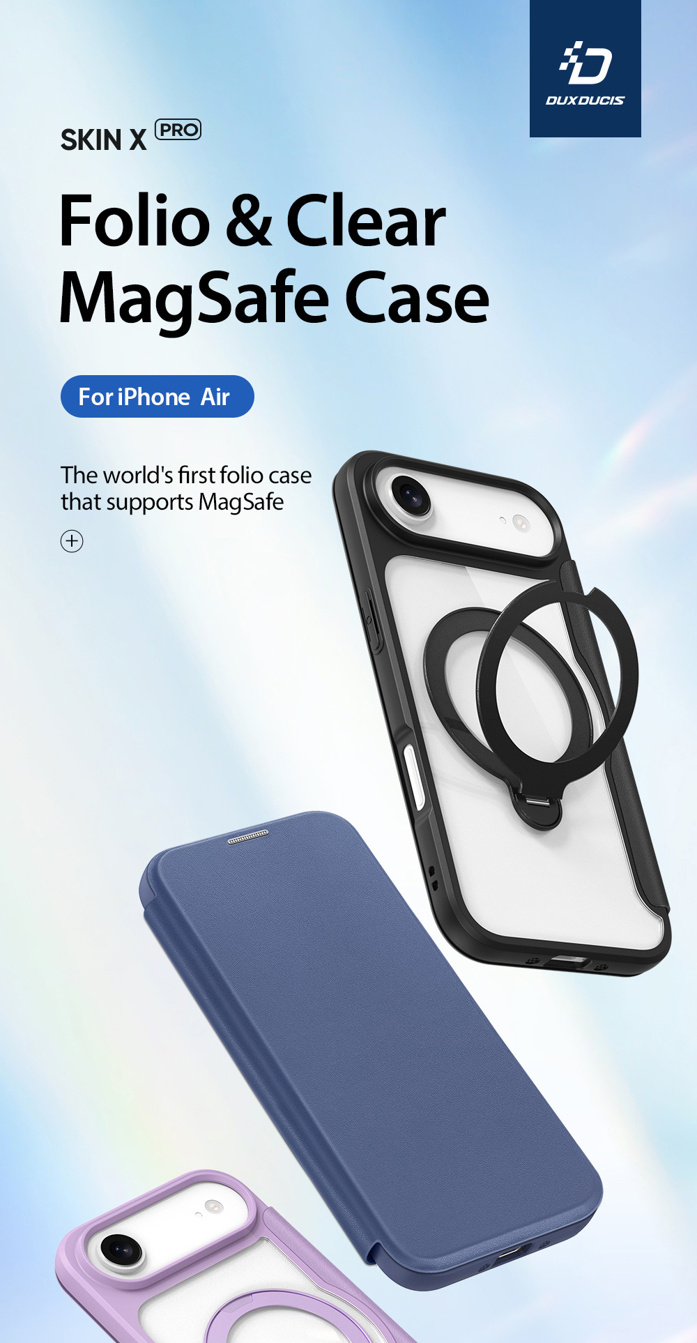 Skin X Pro Series Folio Magnetic Case with 360° Ring Stand for iPhone Air