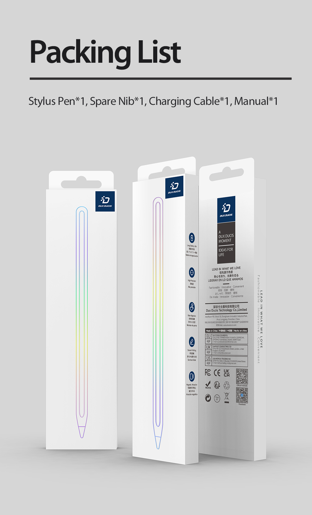The active POM nib is not only wear-resistant but also highly sensitive, a free spare nib is included in the packaging.