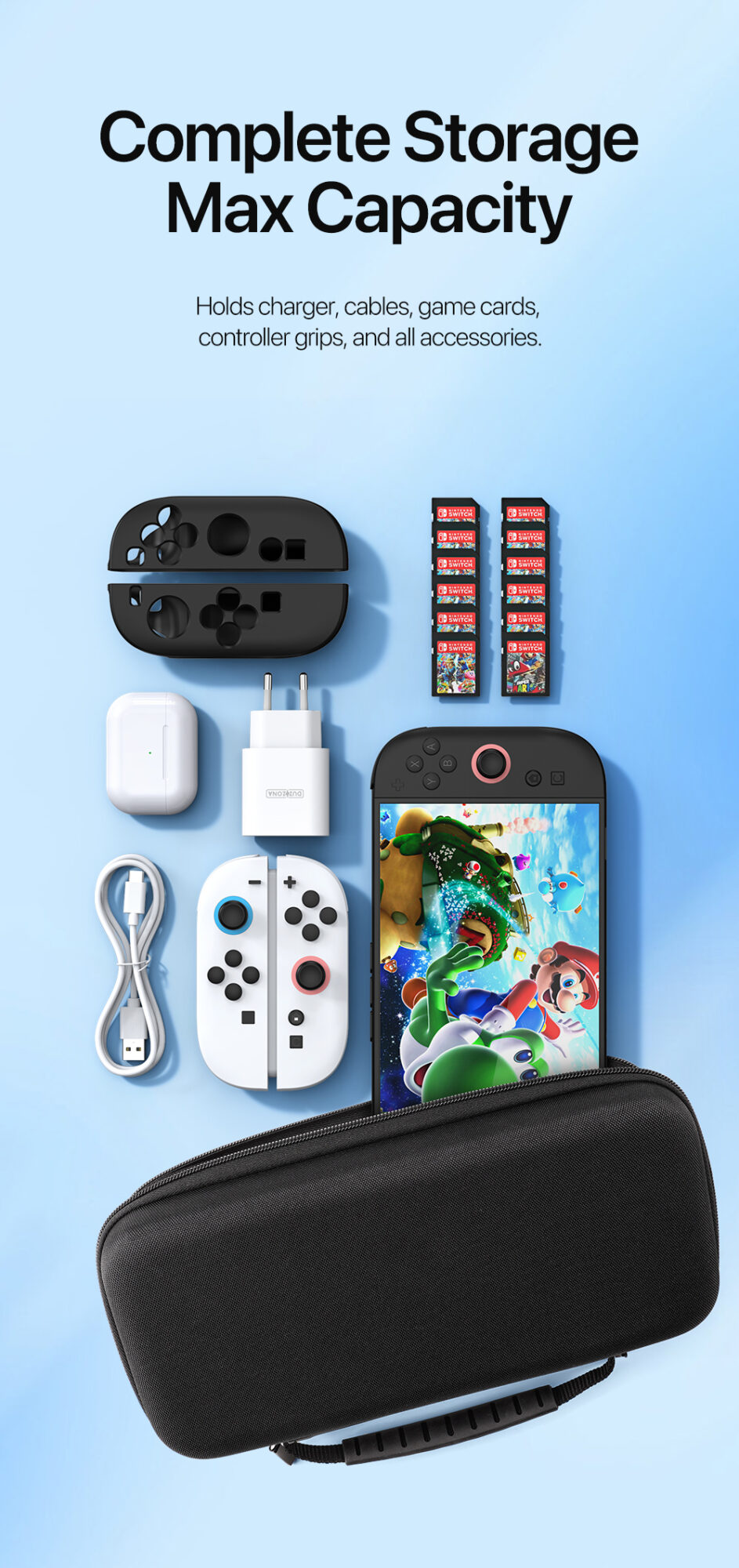 No disassembly needed – fits Switch2 with shells/controllers attached.
