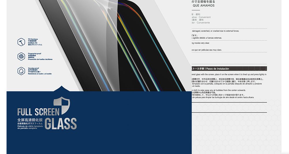 Premium tempered glass with 9H hardness rating protects your device against scratches.