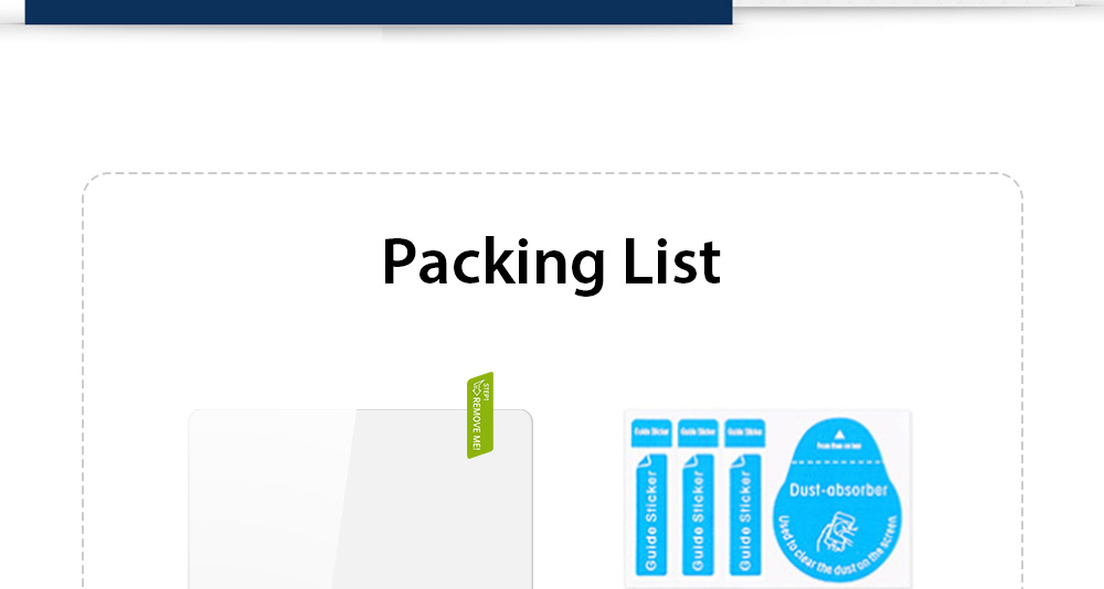 Dust-cloth and dust-absorber are included in the packing list, so it is easy to install this screen protector on your device.