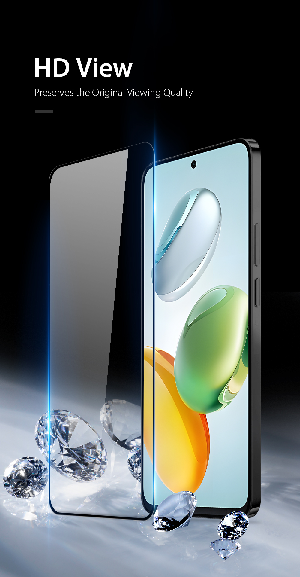 Premium tempered glass with 9H hardness rating protects your device against scratches.