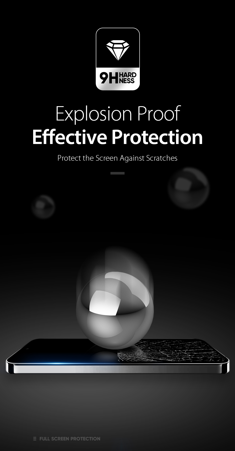 Premium tempered glass with 9H hardness rating protects your device against scratches.