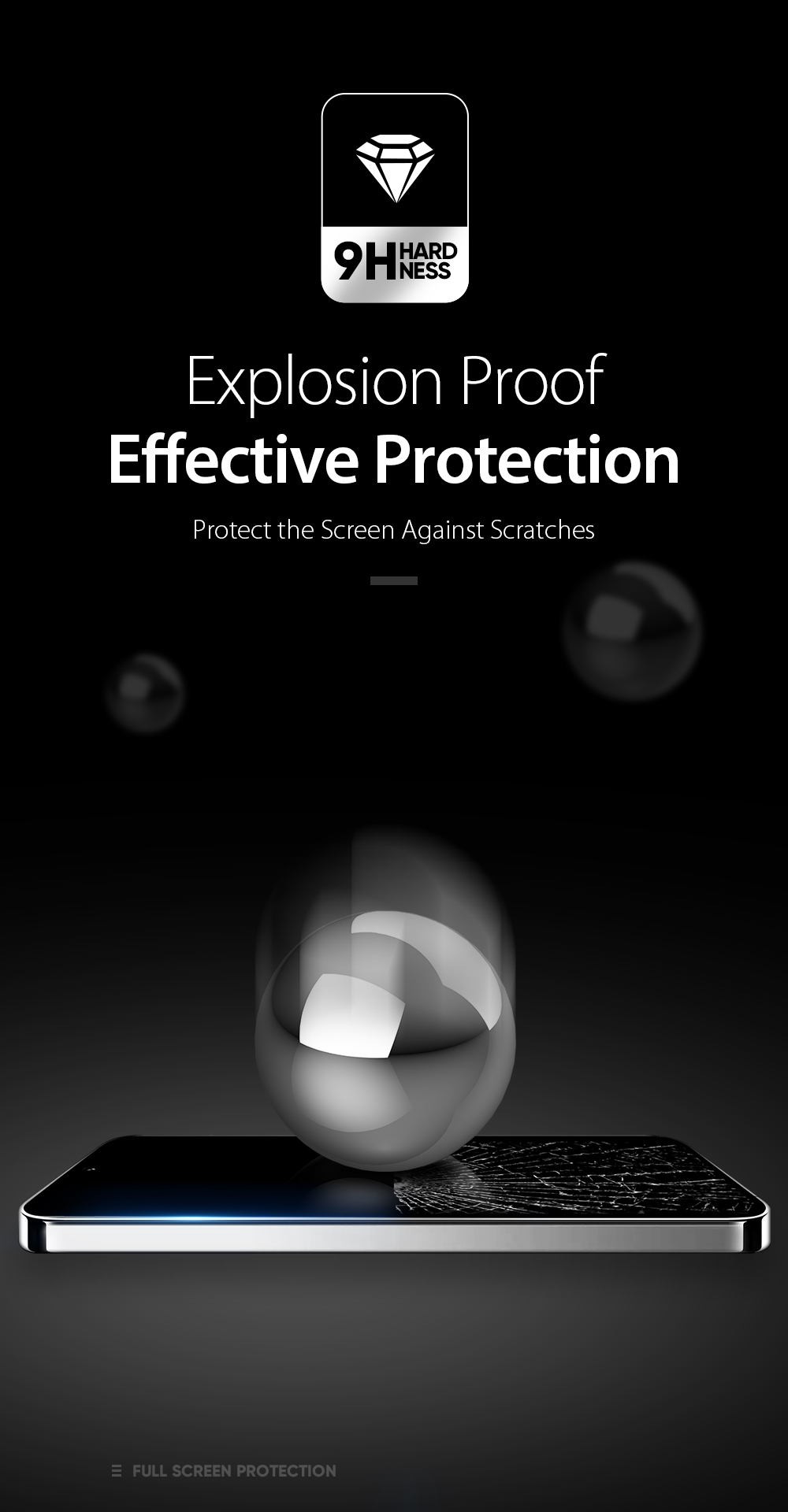 Premium tempered glass with 9H hardness rating protects your device against scratches.