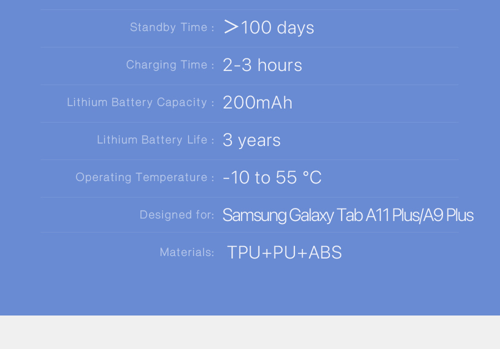 Compatible with Samsung Tab A11 Plus / A9 Plus (X310/X315/X236/X210/X215/X216).