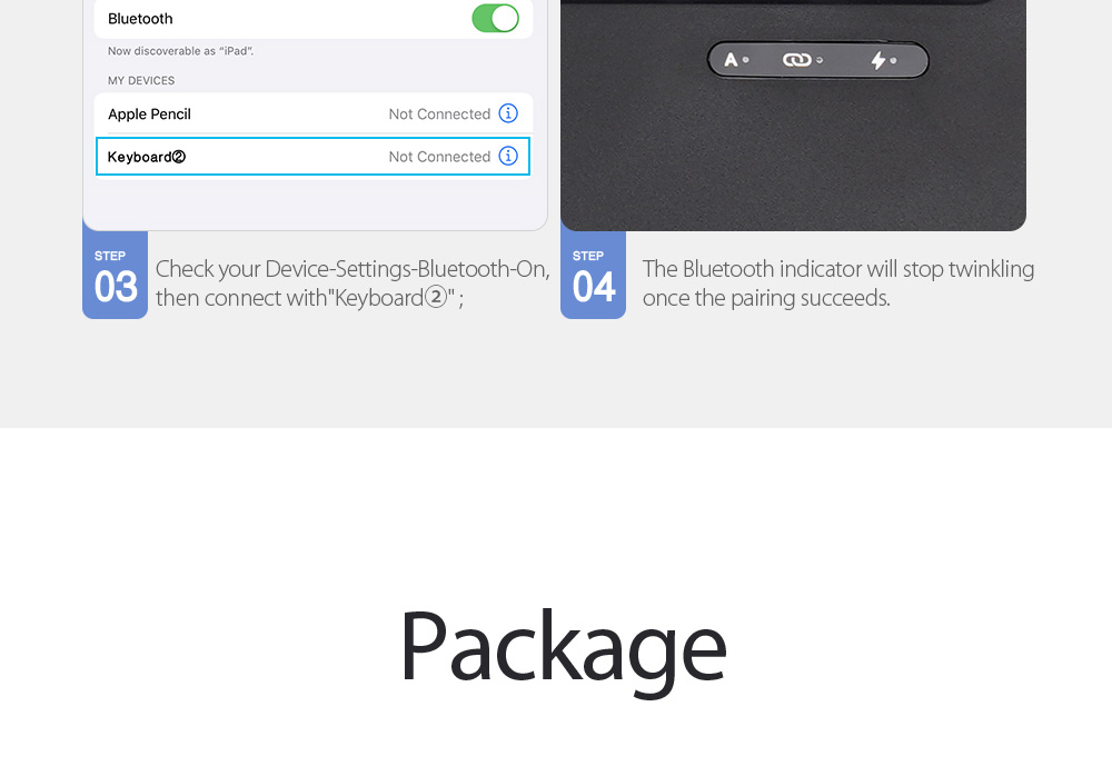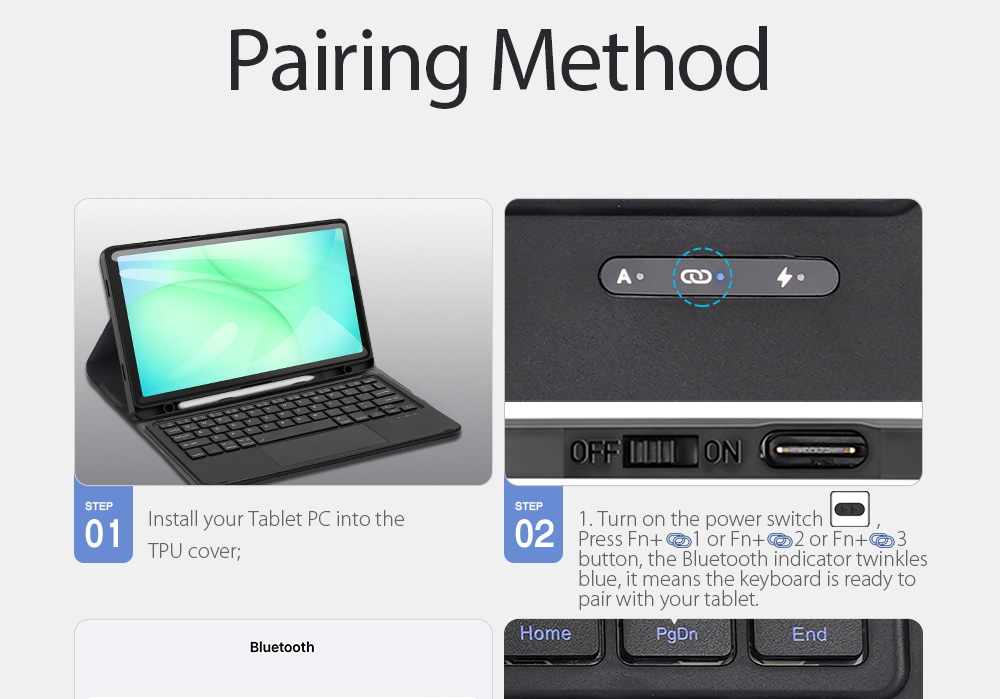 Pair Samsung Tab S9 Ultra to the keyboard via Bluetooth, and keyboard is able to work 30 days with no interruptions once it is fully charged.
