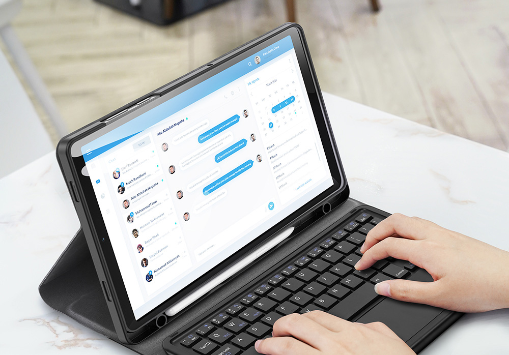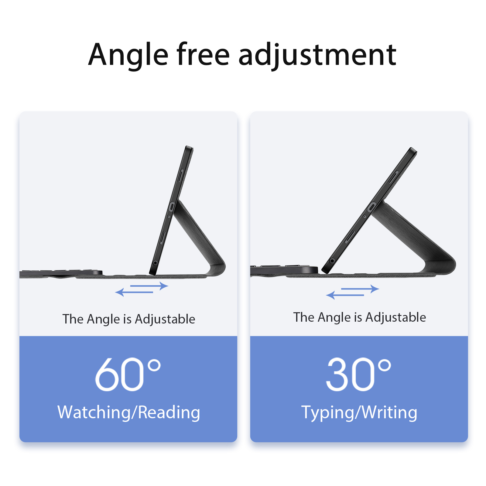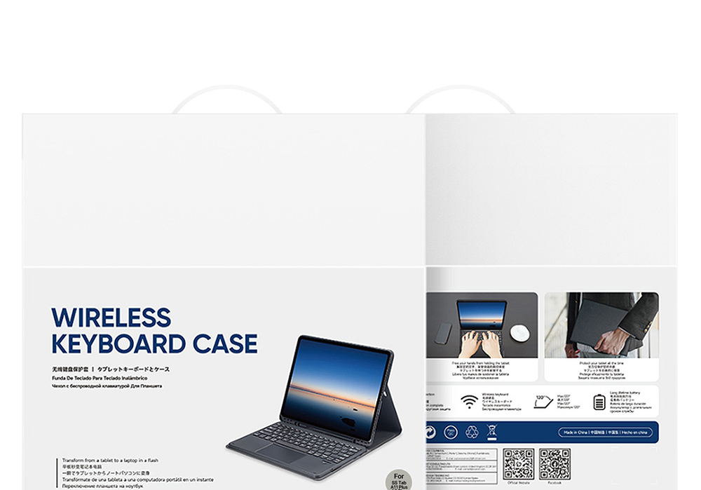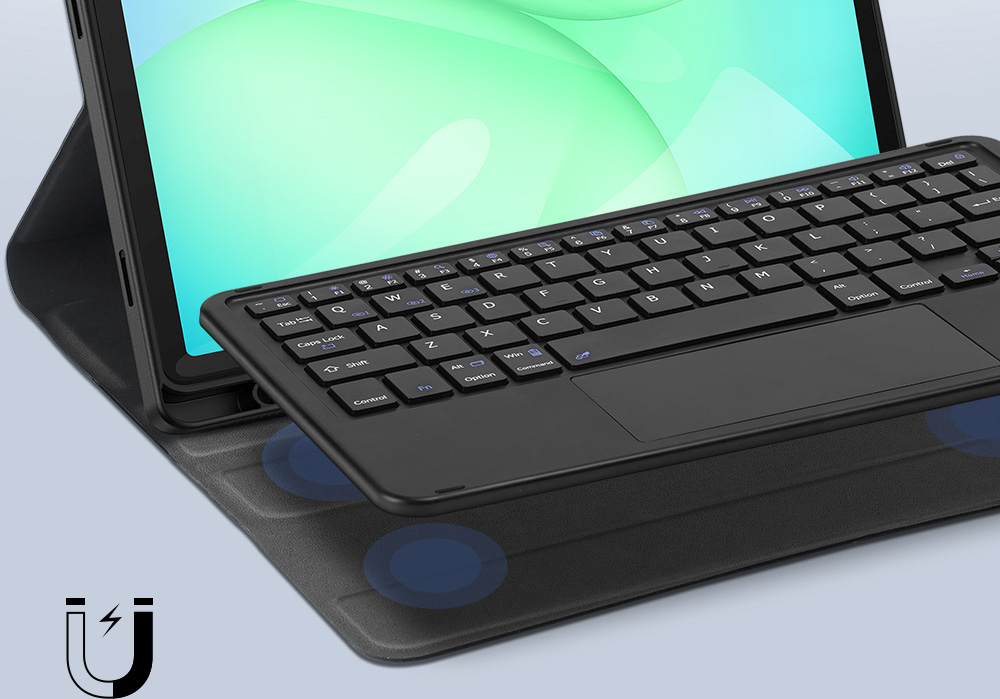 This keyboard designed for Samsung Tab A11 Plus / A9 Plus (X310/X315/X236/X210/X215/X216) comes with protective case, the keyboard can be attached to the case via magnetic forces.