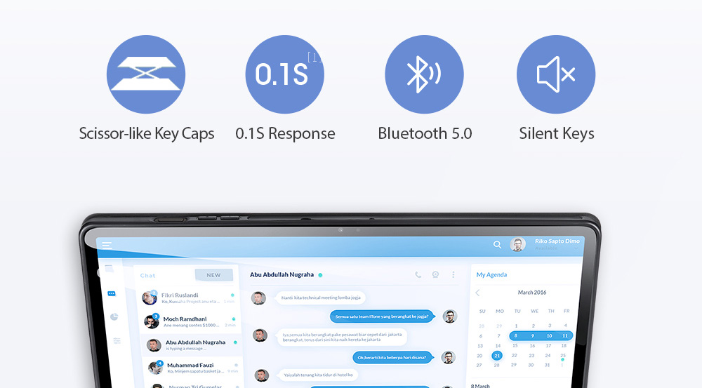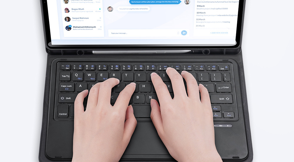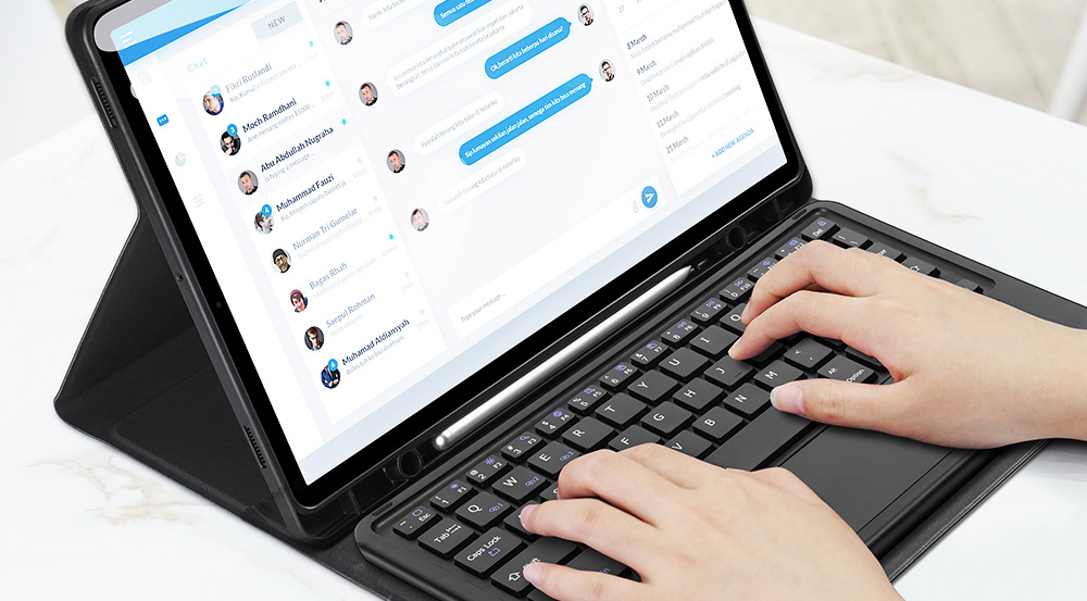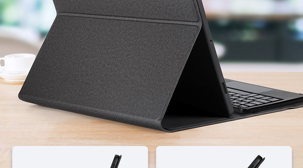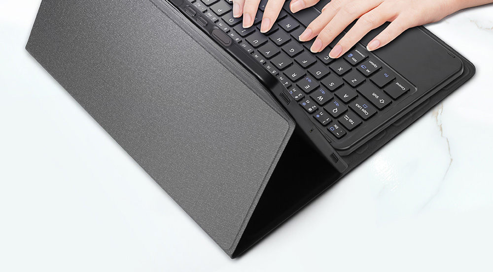 This keyboard designed for Samsung comes with protective case, the keyboard can be attached to the case via magnetic forces.