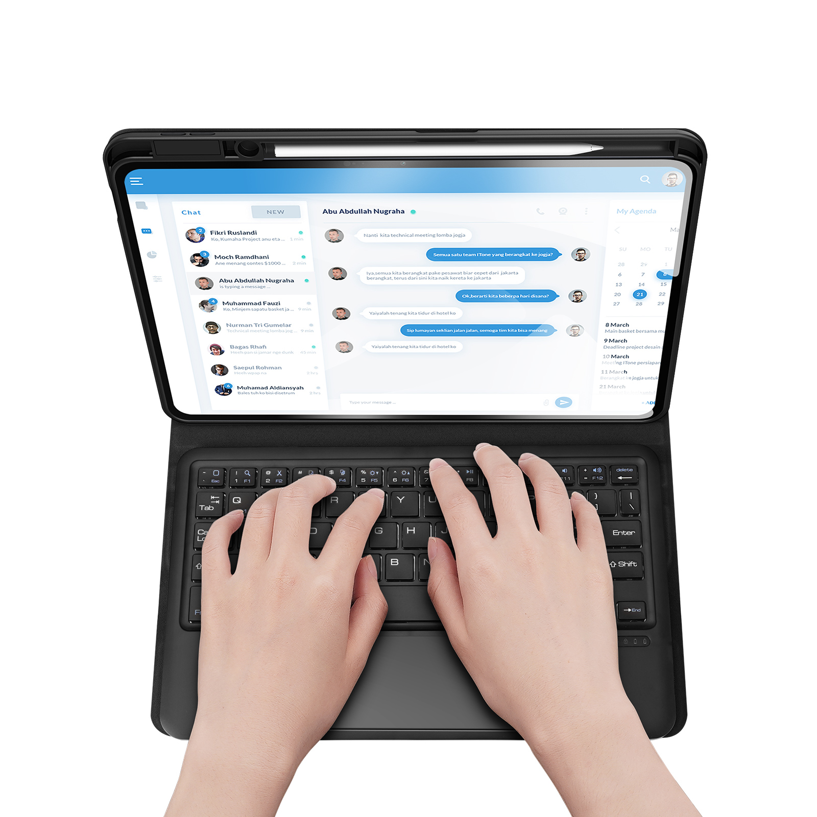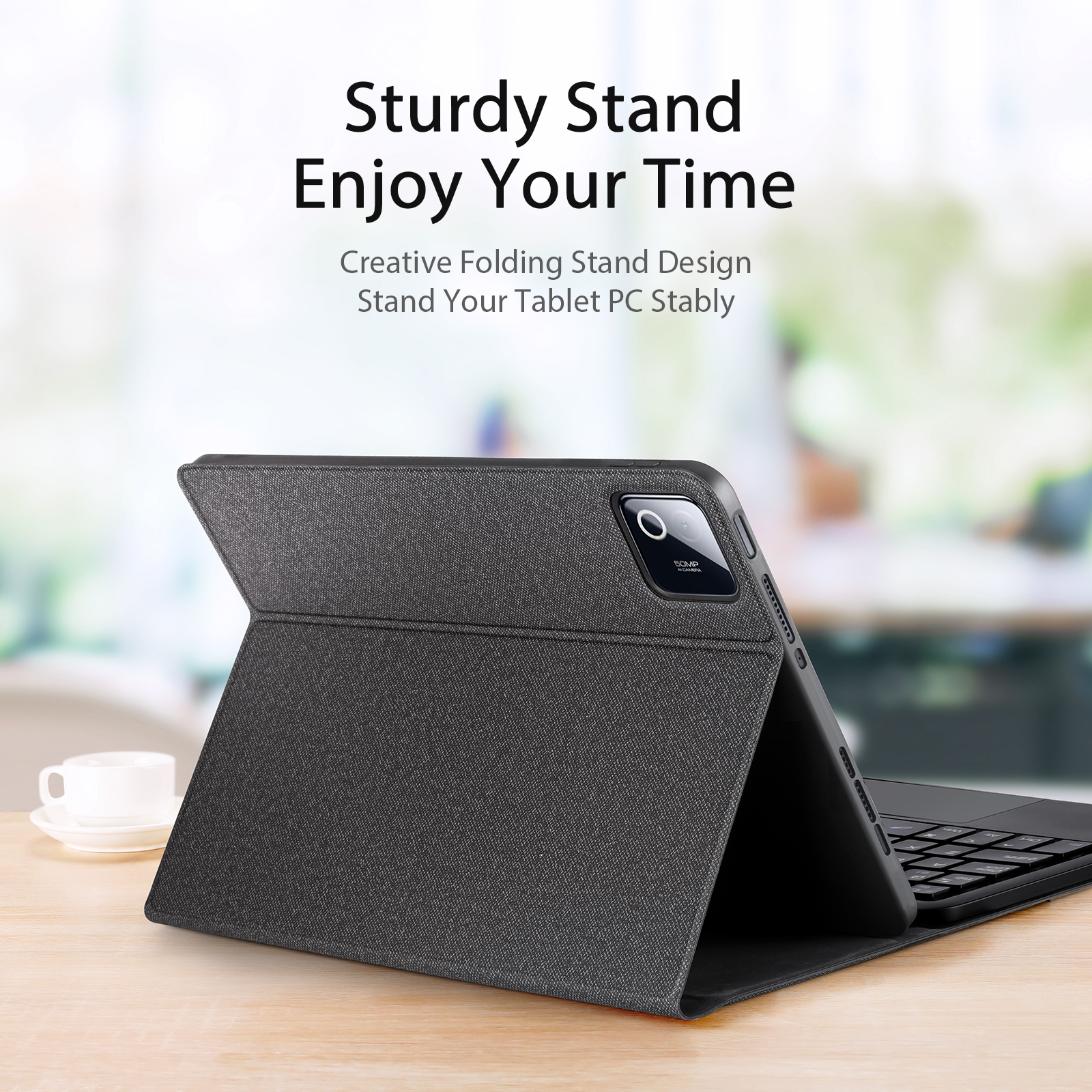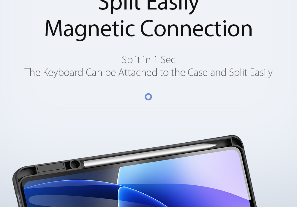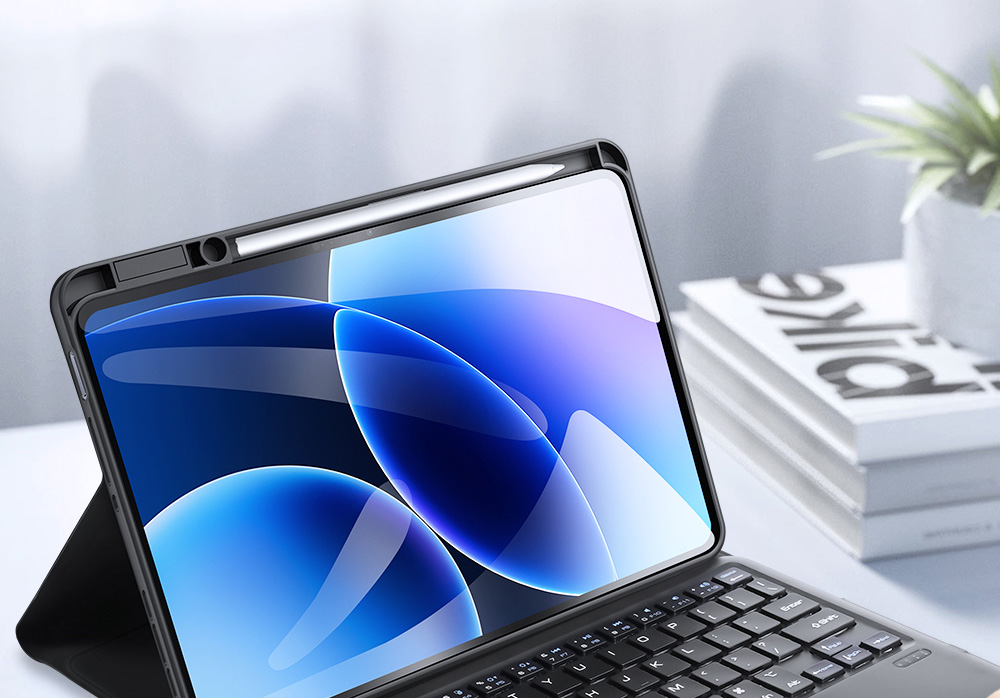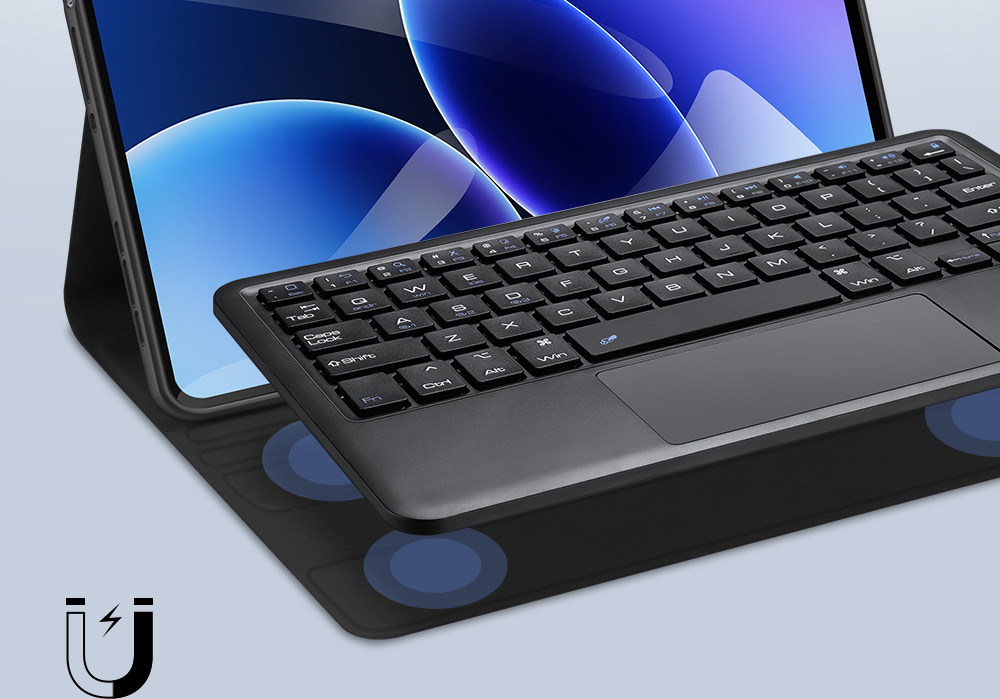 This keyboard designed for Xiaomi Pad 8/8 Pro/7/7 Pro comes with protective case, the keyboard can be attached to the case via magnetic forces.