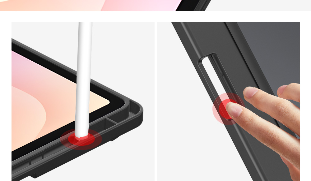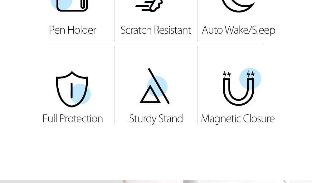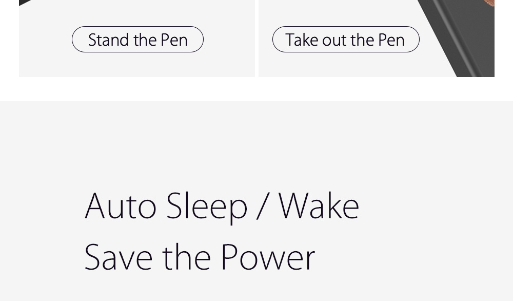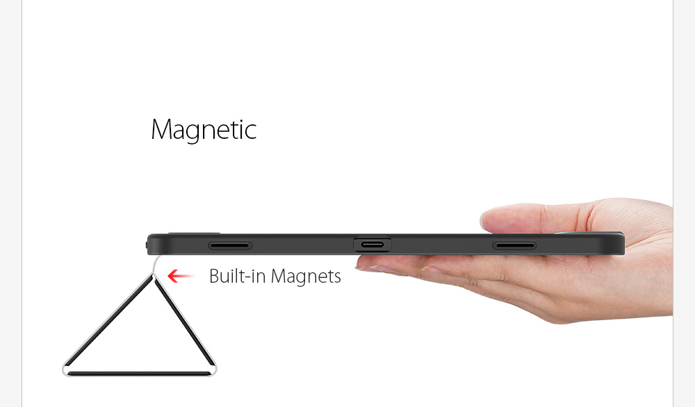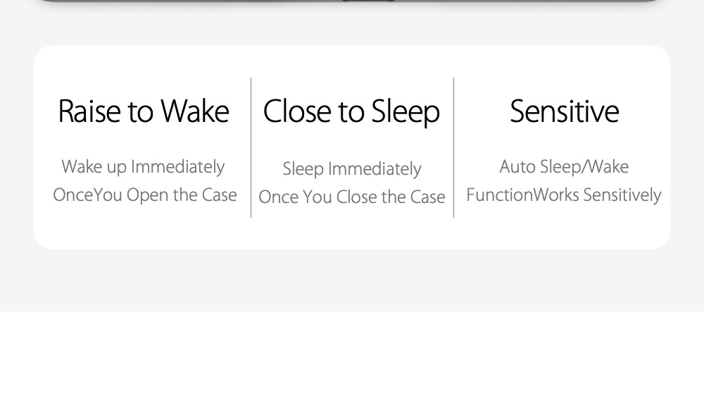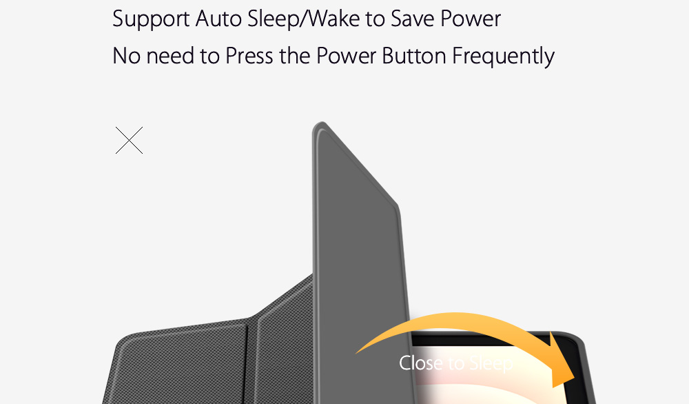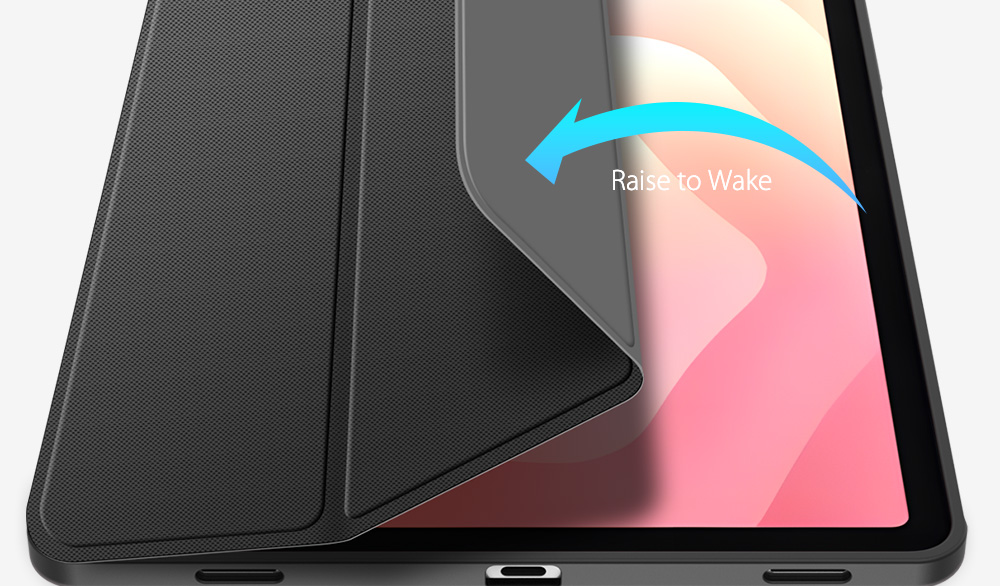 Comes with wake/sleep function, raise the case, the tablet wakes up; close the case, the tablet sleeps.