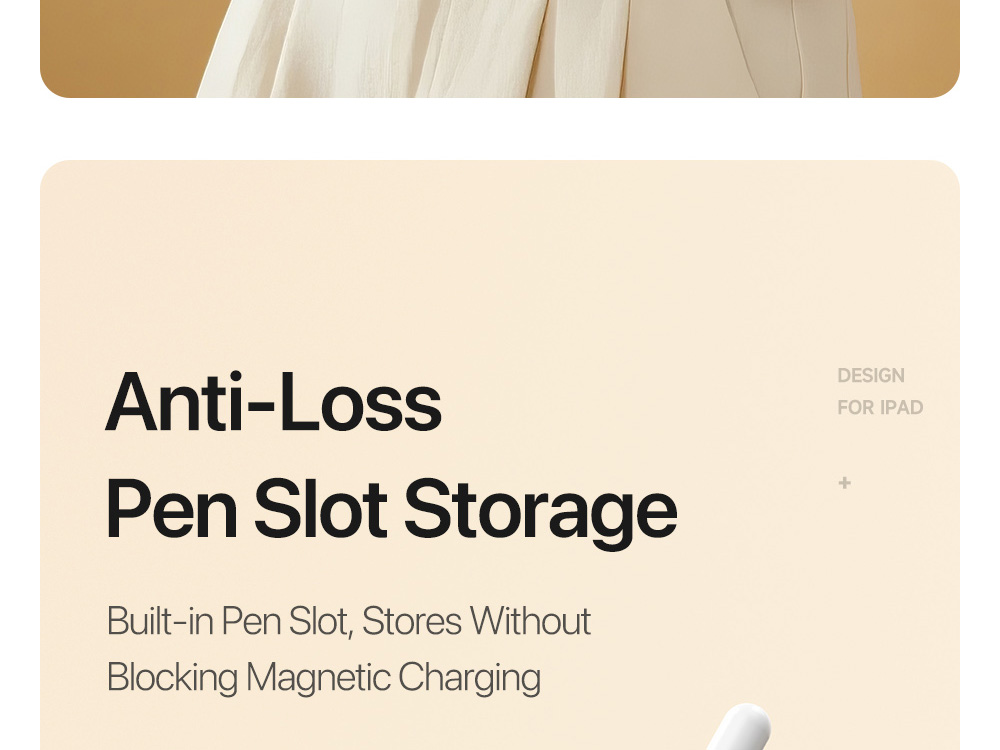 Magnetic pen slot storage, charges while storing.