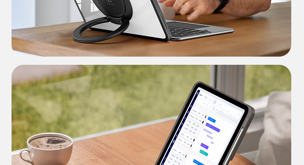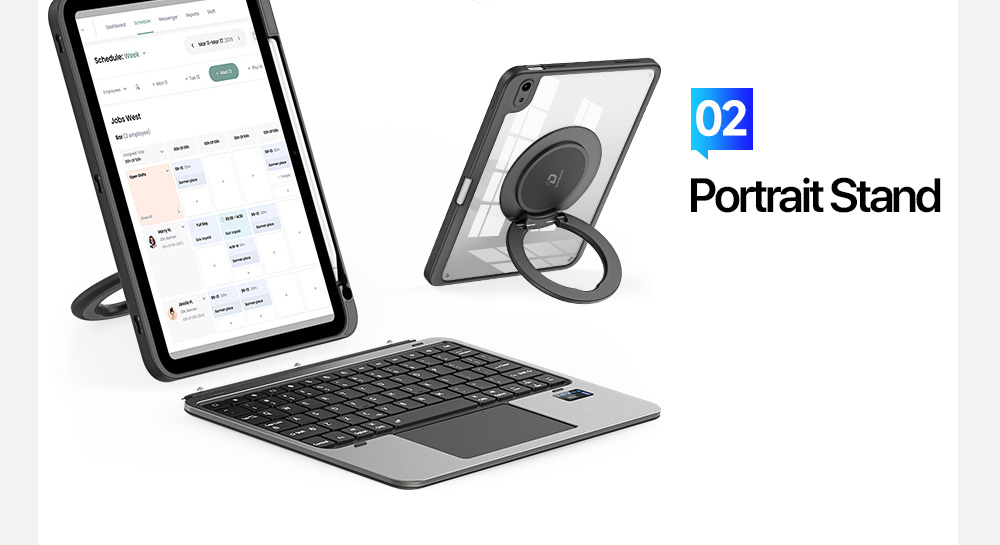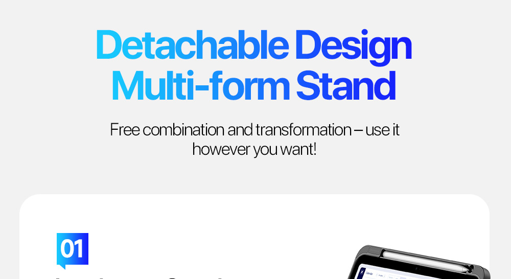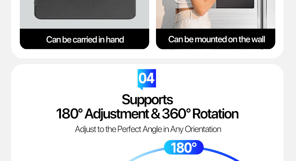 360-degree rotatable stand with multi-angle adjustment and multiple modes.