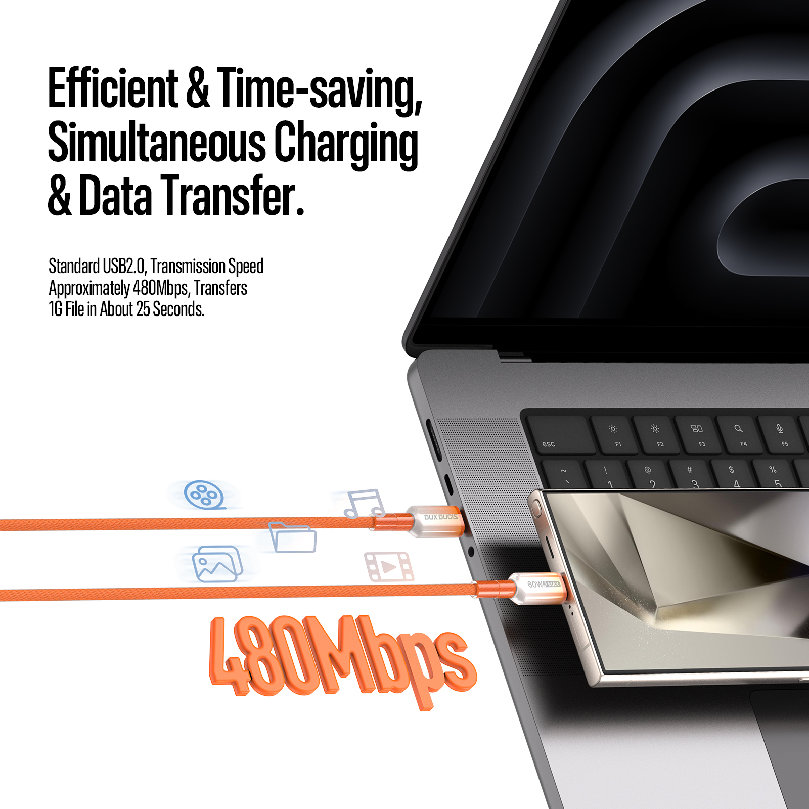 3. 480Mbps Data Sync | Fast file transfer while charging.