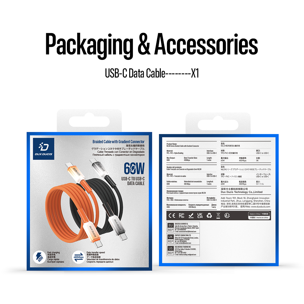 WLCM Series Braided Cable with Gradient Connector 60W