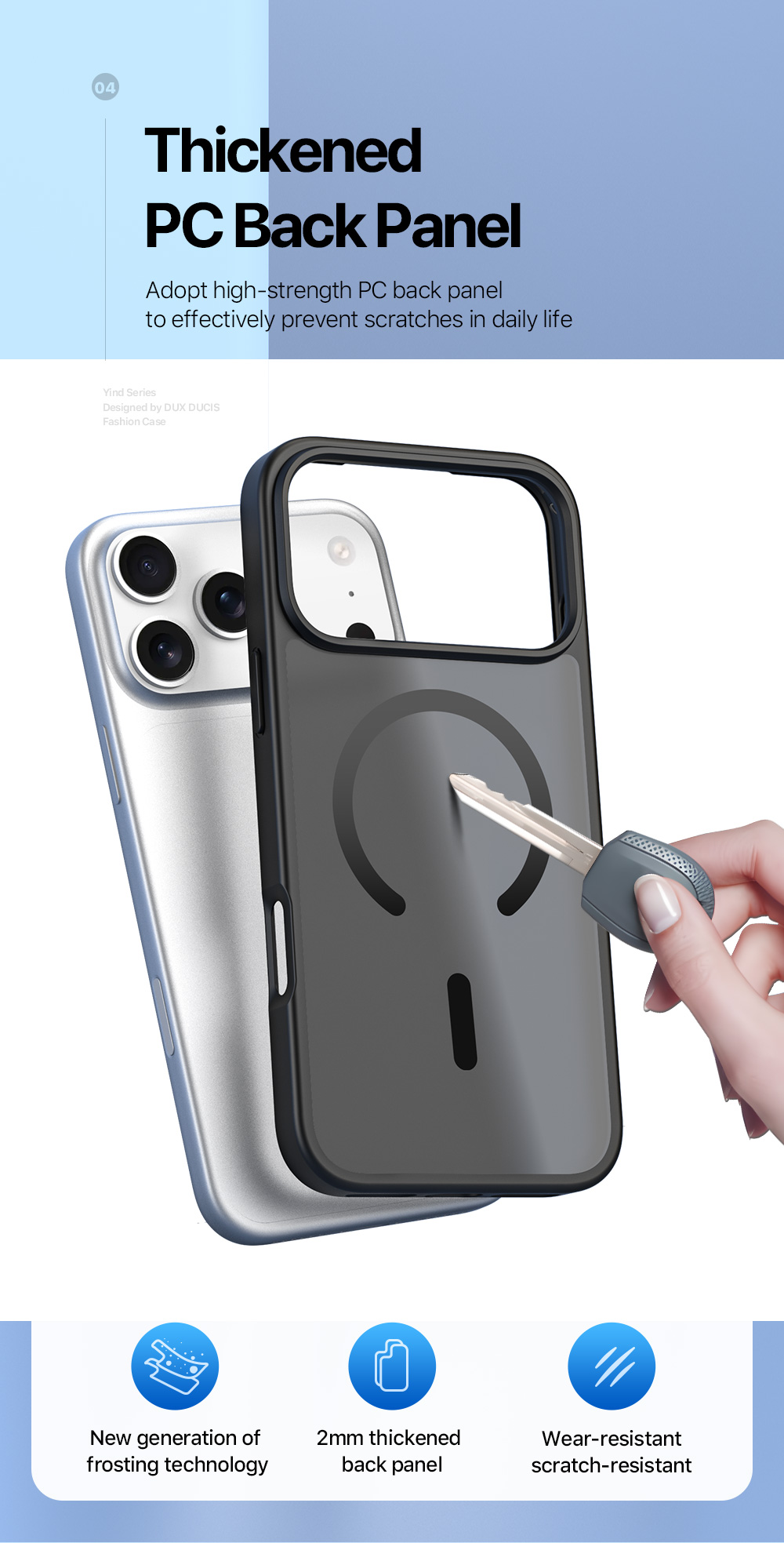 The thickened frosted back panel is not only wear-resistant, but also comfortable to the touch and anti-fingerprint;