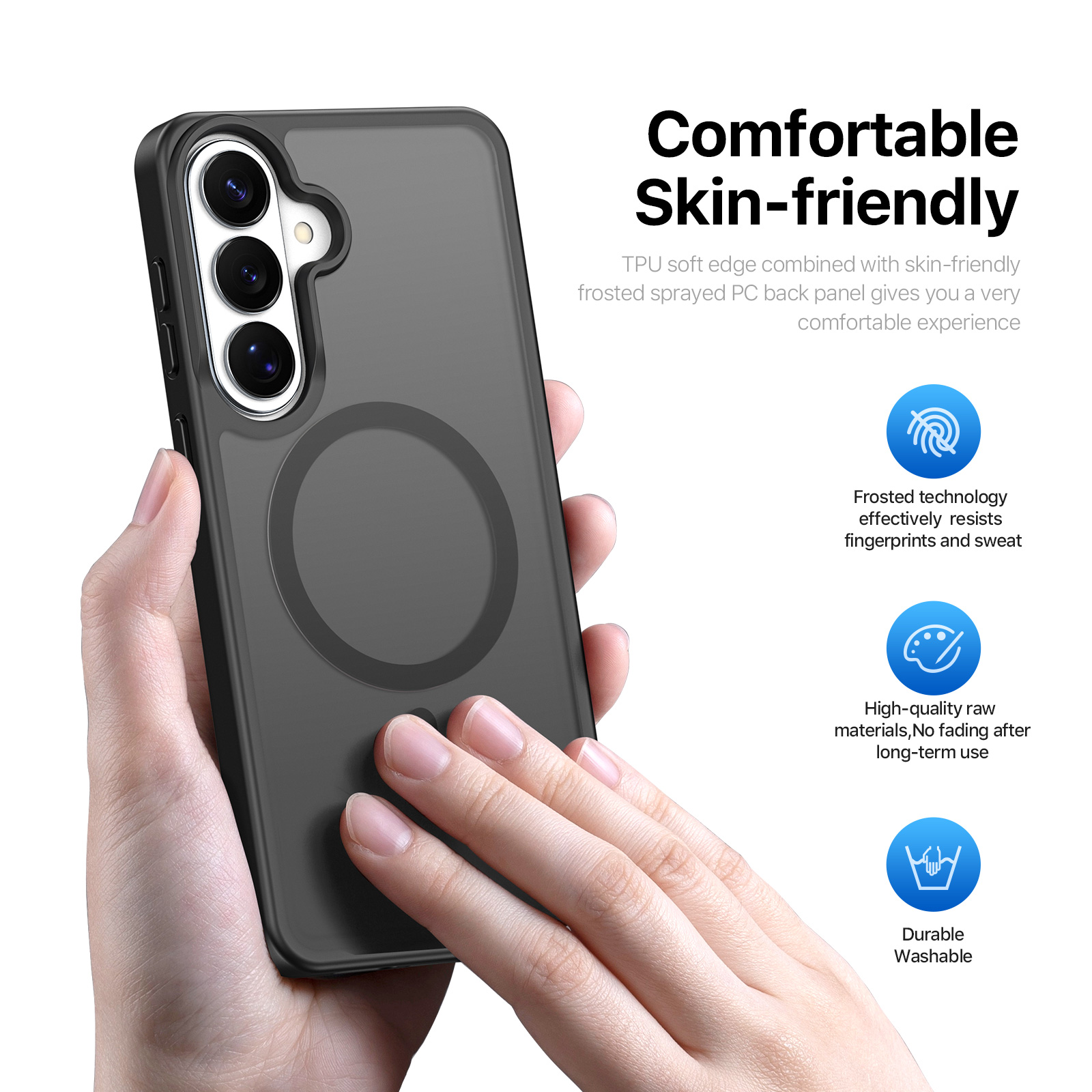 The thickened frosted back panel is not only wear-resistant, but also comfortable to the touch and anti-fingerprint;