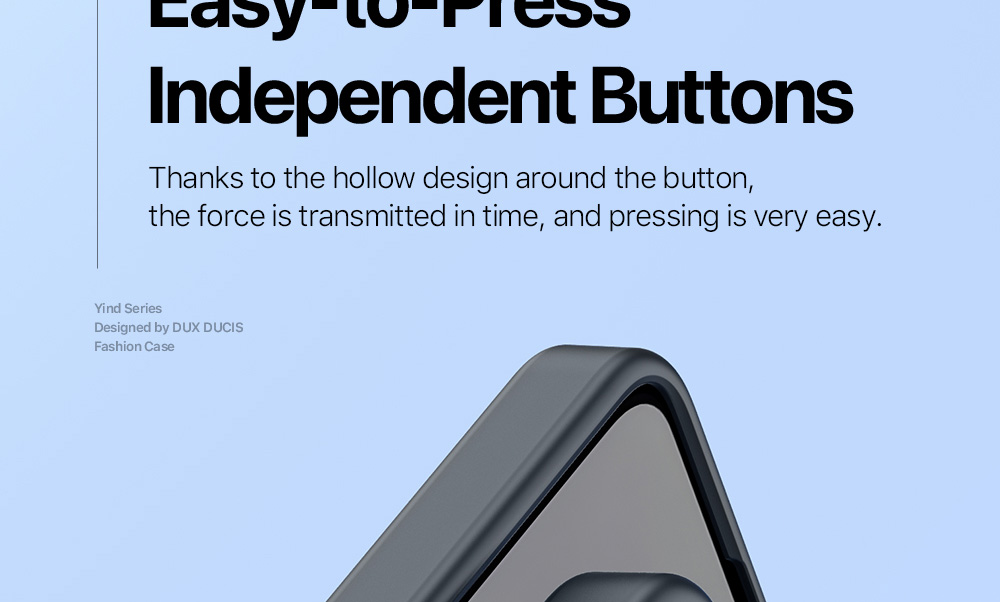 Independent volume/power buttons, with hollowed-out all around, easy to press;