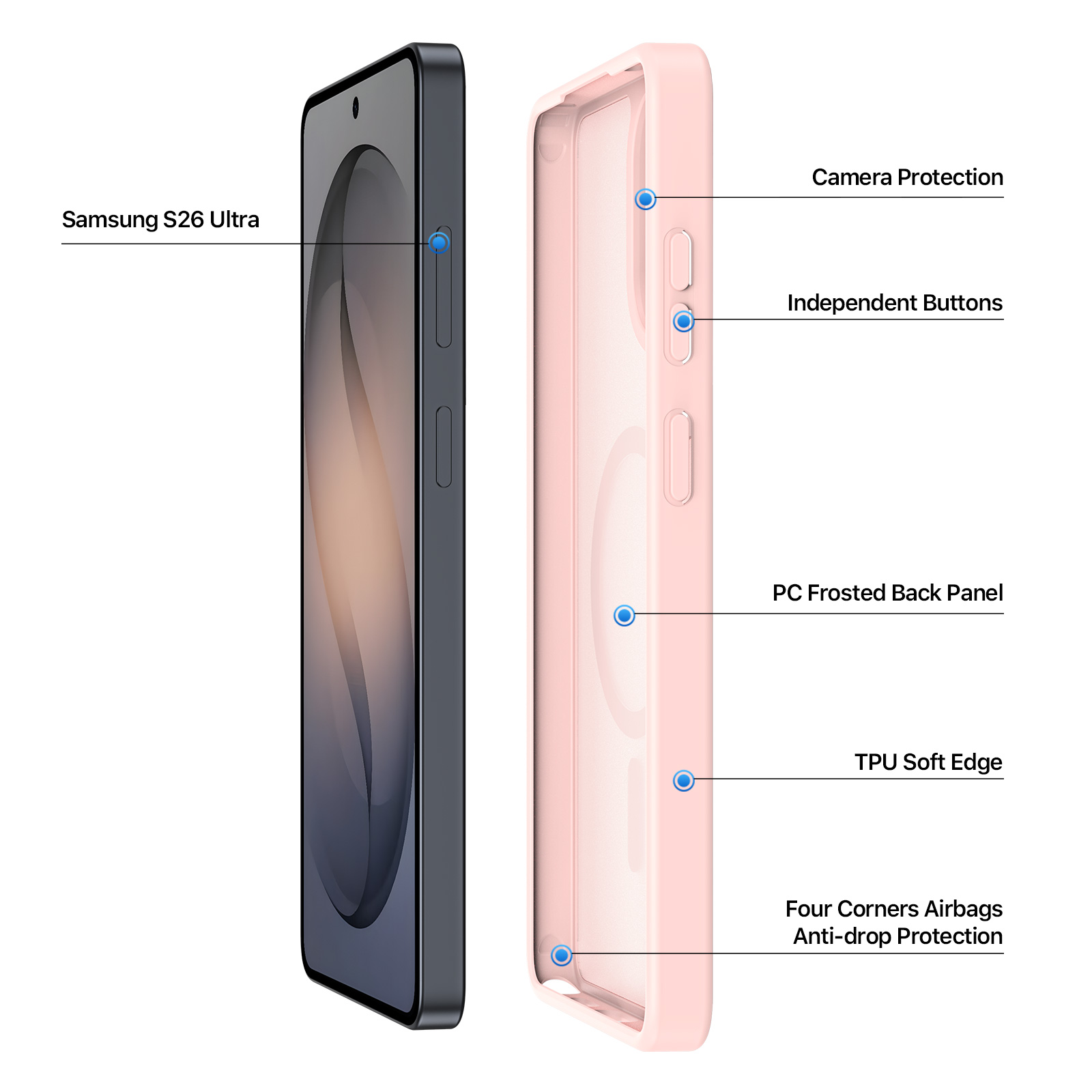 There are four small airbags at the four corners, which offers reliable drop protection;