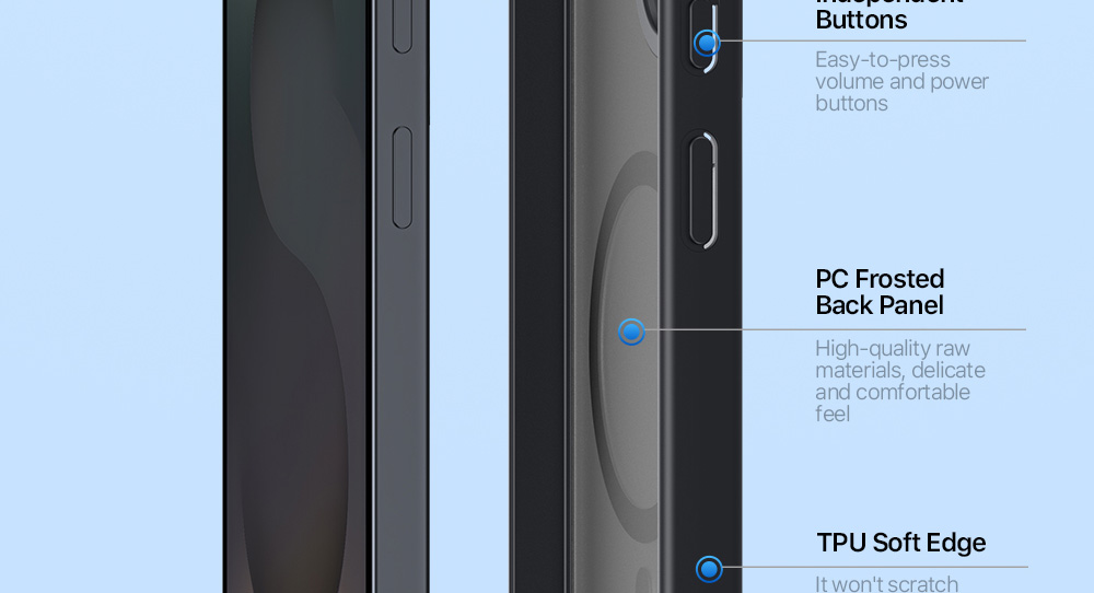 The thickened frosted back panel is not only wear-resistant, but also comfortable to the touch and anti-fingerprint;
