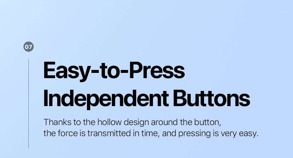 Independent volume/power buttons, with hollowed-out all around, easy to press;